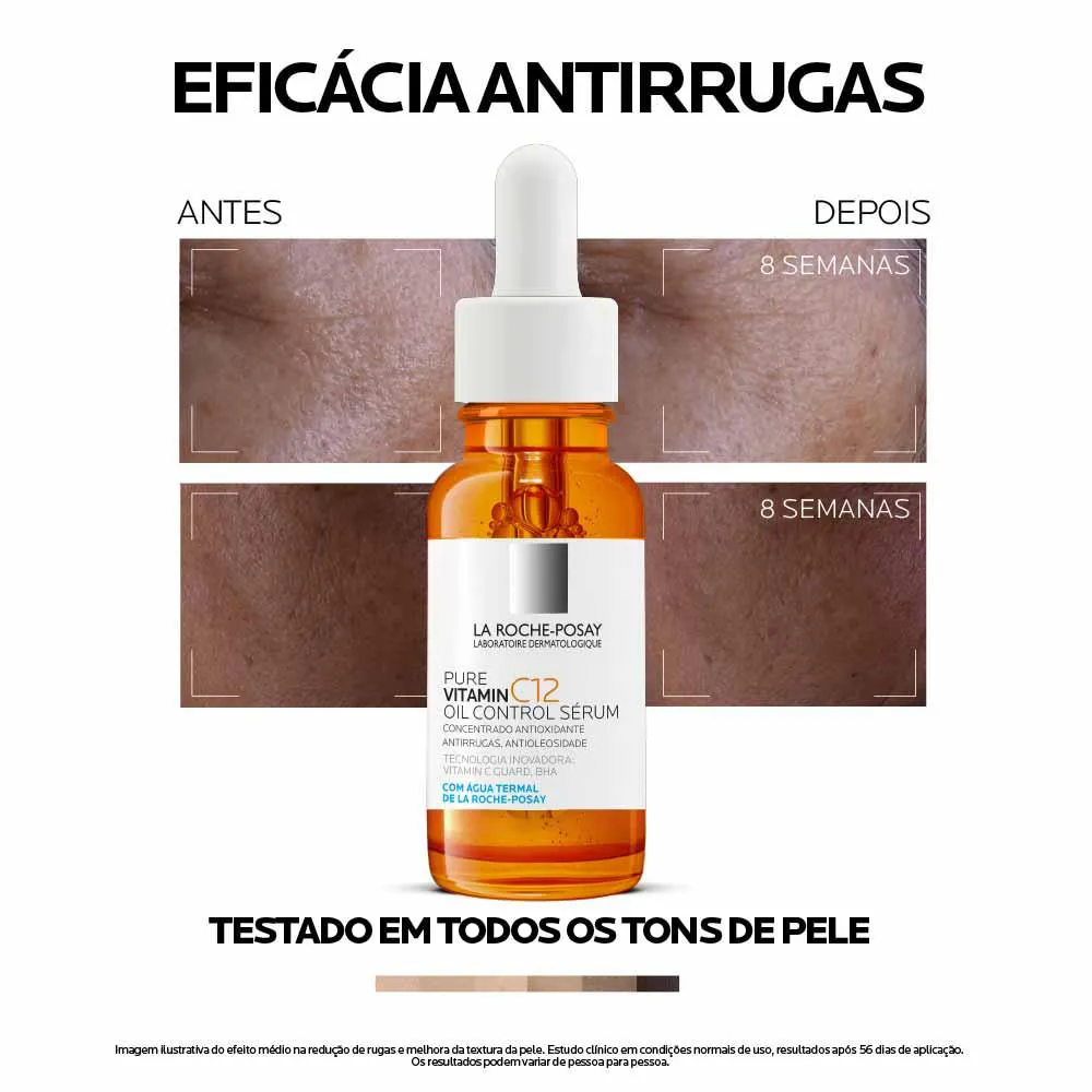 O Sérum Antirrugas La Roche-Posay Pure Vitamin C12 Oil Control é um tratamento facial desenvolvido especialmente para quem busca combater os sinais de envelhecimento enquanto controla a oleosidade da pele.