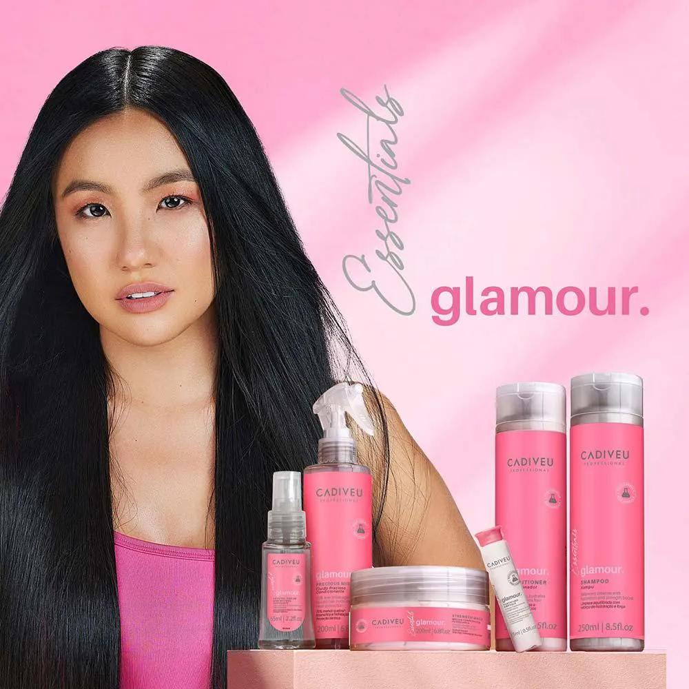 O Glamour Cristal Líquido da marca Cadiveu proporciona um toque acetinado e brilhoso ao cabelo.