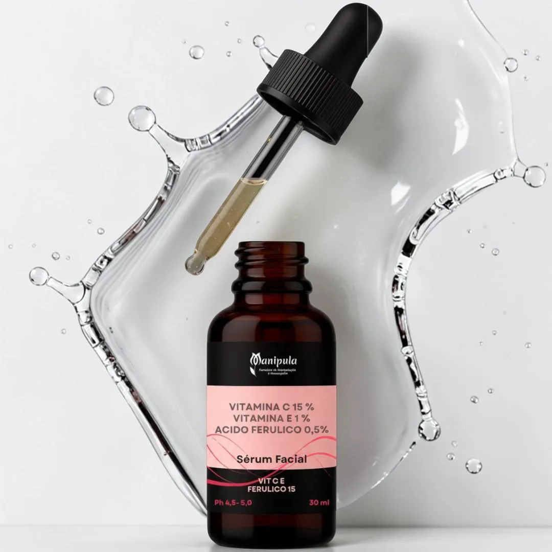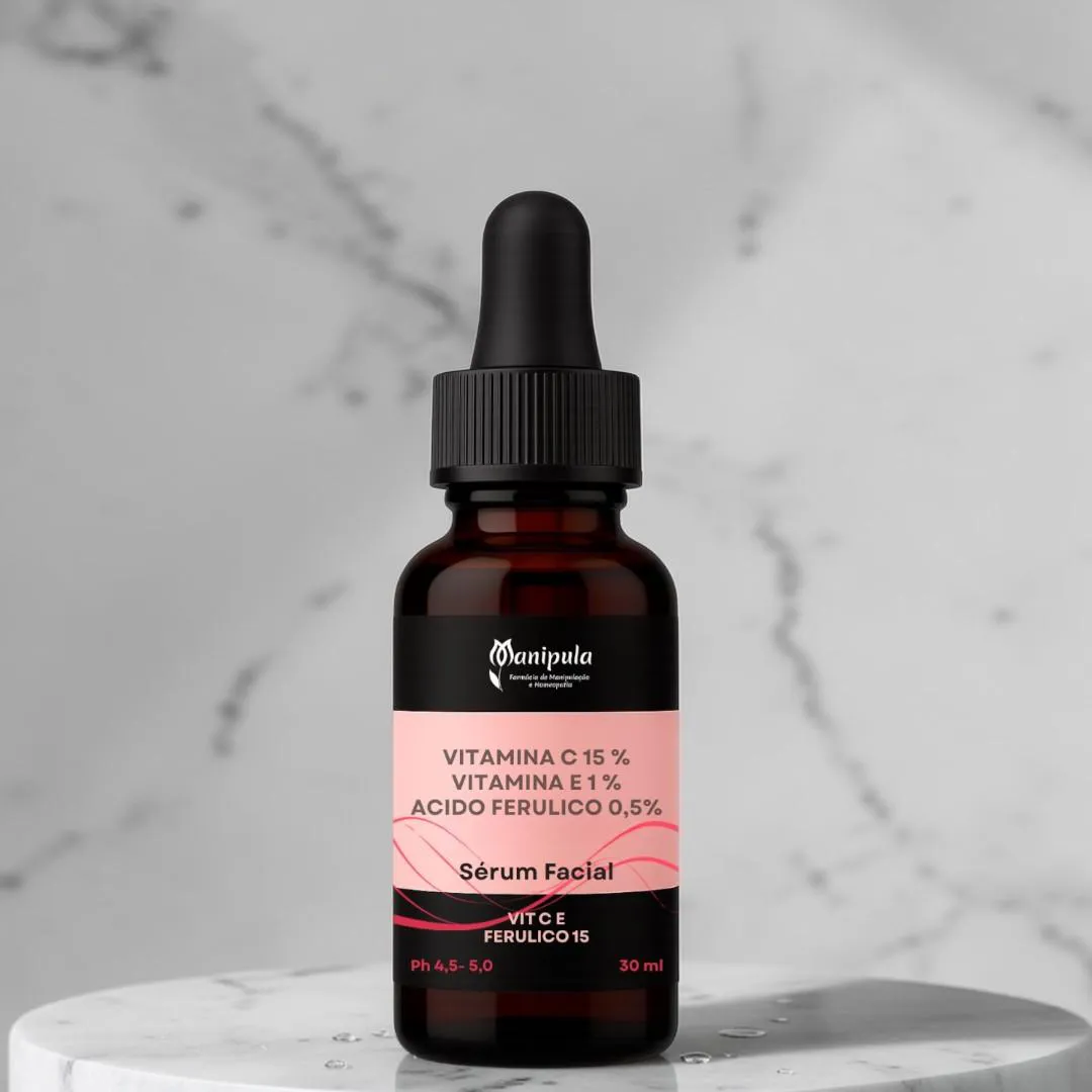 Sérum de Vitamina C 15% + Vitamina e 1% + Ácido Ferúlico 1 % | Vit C e Ferulico 15 - 30 Ml