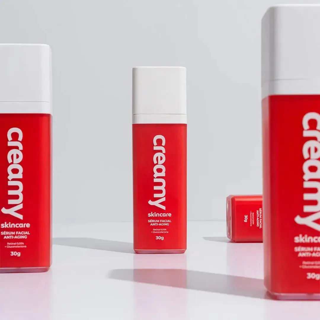 O sérum facial Retinal da Creamy é um produto anti-idade revolucionário, ideal para ser utilizado durante a noite e adequado para todos os tipos de pele, com um foco especial nas peles a partir de 25 anos de idade. Este sérum se destaca por sua formulação com a máxima concentração permitida de Retinaldeído, um componente de vanguarda reconhecido por sua eficácia superior no combate às rugas, na ação clareadora da pele e na capacidade de equilibrar a oleosidade. O Retinaldeído é considerado uma evolução direta do retinol, oferecendo resultados até 11 vezes mais rápidos e sem causar irritações, o que o torna um aliado poderoso na redução dos sinais do envelhecimento, como rugas, flacidez e manchas. Além disso, o sérum é enriquecido com Gluconolactona, um poli-hidroxi-ácido que suaviza a pele através de uma renovação celular delicada, otimizando a penetração dos demais ativos presentes na fórmula. Este ingrediente também ajuda a manter a pele profundamente hidratada. Graças a essa combinação de ingredientes, o sérum Retinal da Creamy irá rejuvenescer a aparência da pele, melhorando sua textura e saúde geral, proporcionando um cuidado noturno completo. Principais benefícios: