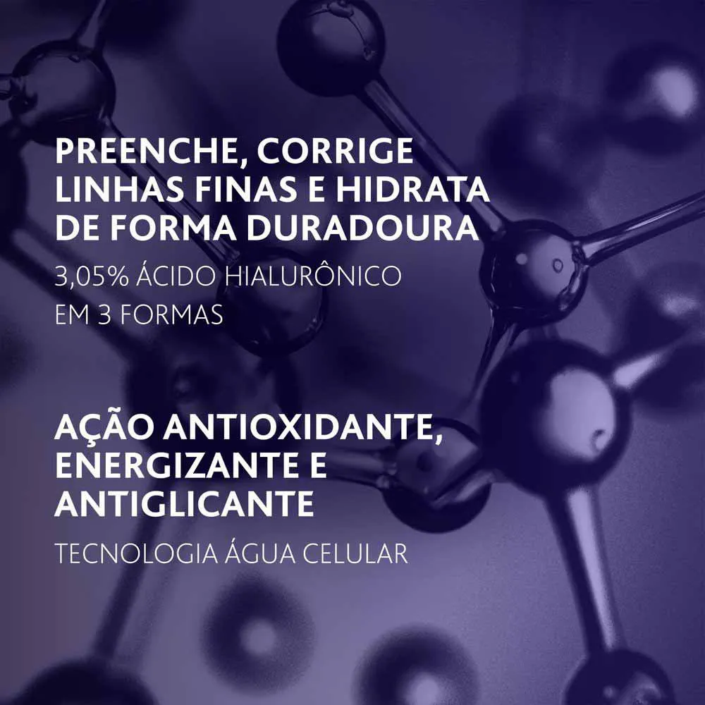 Intensive Hyaluronic Sérum associa três formas de Ácido Hialurônico para manter a juventude da pele: mantém altos níveis de água na epiderme, suaviza as linhas finas provocadas pela desidratação e estimula a síntese de ácido hialurônico na pele para um efeito de preenchimento duradouro.