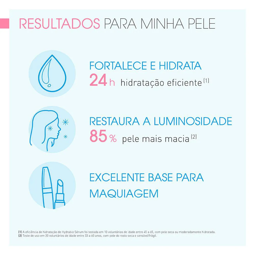Hydrabio Sérum é um sérum concentrado regenerador da barreira cutânea protetora e da hidratação. Ideal para todos os topos de pele, principalmente as secas e desidratadas. Textura em gel refrescante. O complexo biológico patenteado AquageniumTM fortalece a barreira cutânea, reativa o processo natural de hidratação da pele e estimula a circulação de água entre as células através da síntese de aquaporinas.