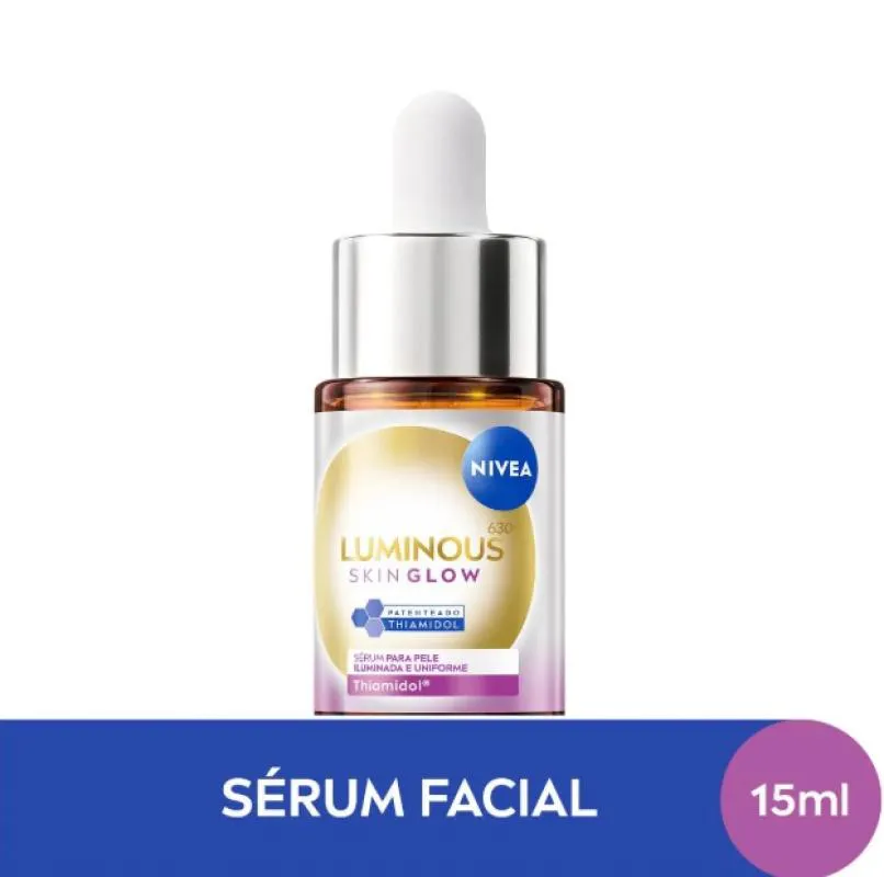 O Nivea Luminous630 Skin Glow é um sérum facial desenvolvido para quem busca uma pele com brilho natural, uniforme e saudável. Sua fórmula potente, enriquecida com Thiamidol, Niacinamida e Aloe Vera, atua em três dimensões: reduz manchas, diminui poros dilatados e hidrata profundamente. Além disso, promove uma sensação refrescante imediata e pode ser usado como primer antes da maquiagem.