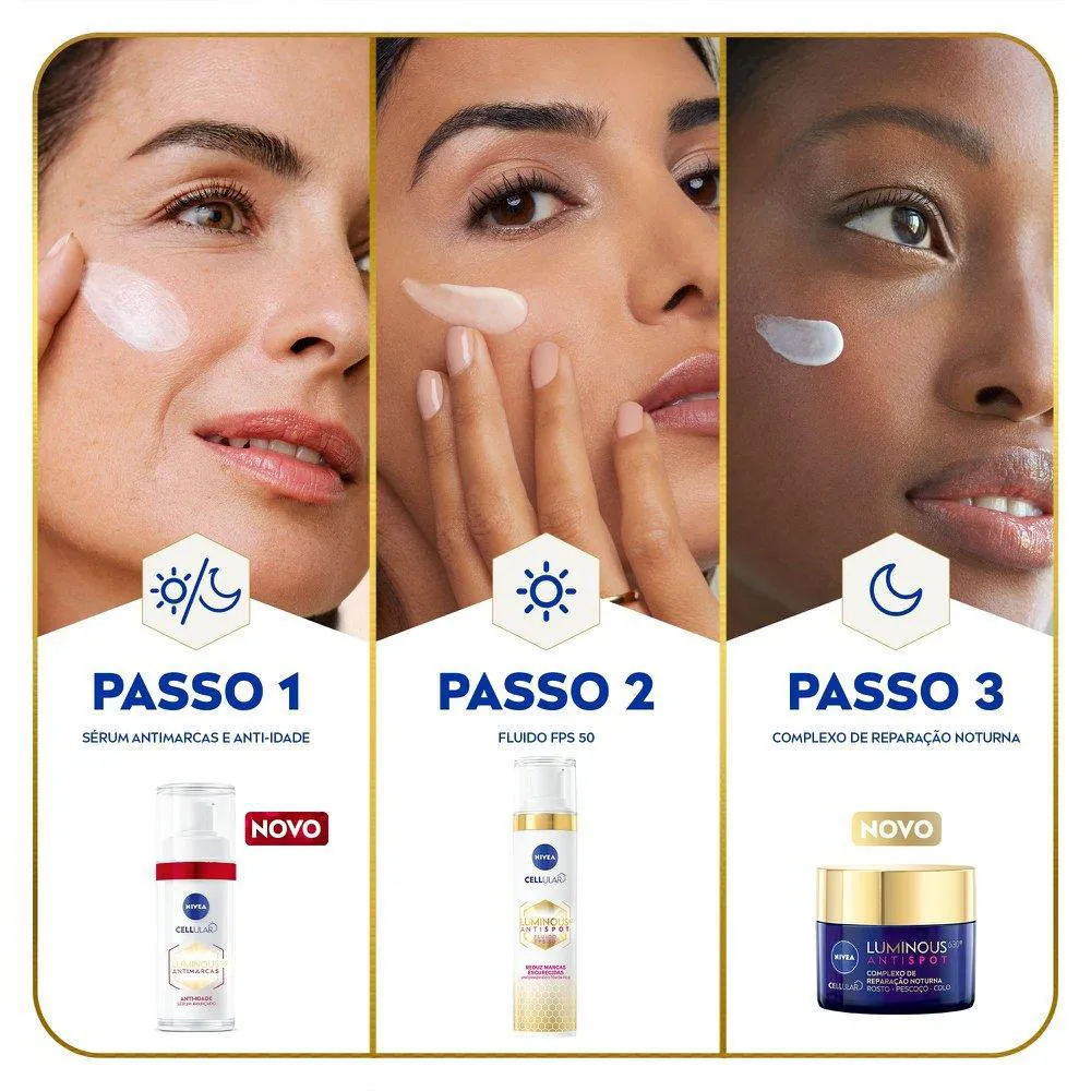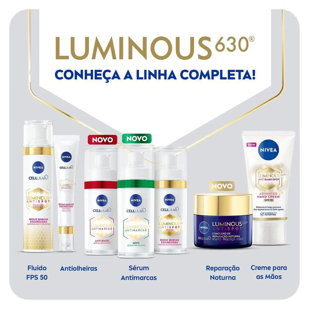 NIVEA Sérum Facial Cellular Luminous 630® ANTIMARCAS anti-idade é um sérum avançado que reduz 10 anos de marcas escurecidas causadas pela idade*.