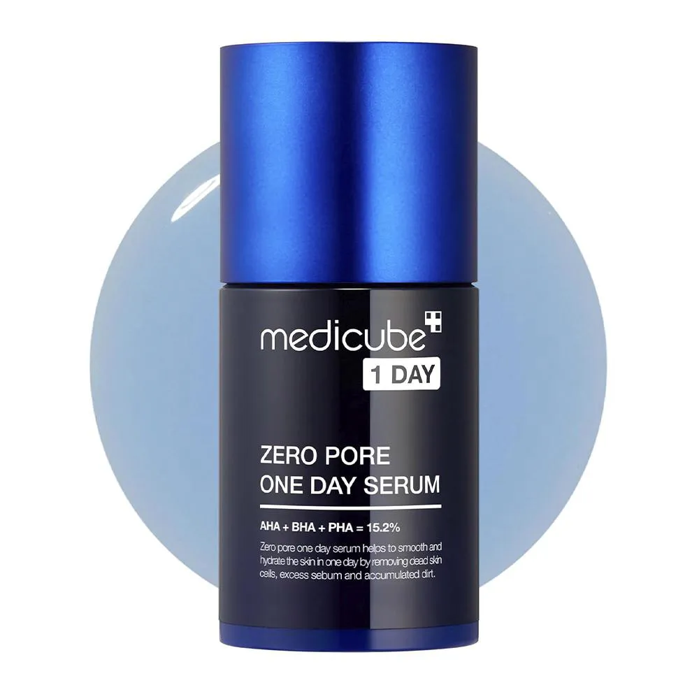 1. Medicube Zero Pore One-day Serum 30 ml: sérum facial K-Beauty que ajuda a suavizar a aparência dos poros e o excesso de brilho, ideal para pele mista a oleosa na rotina de cuidados diários.
