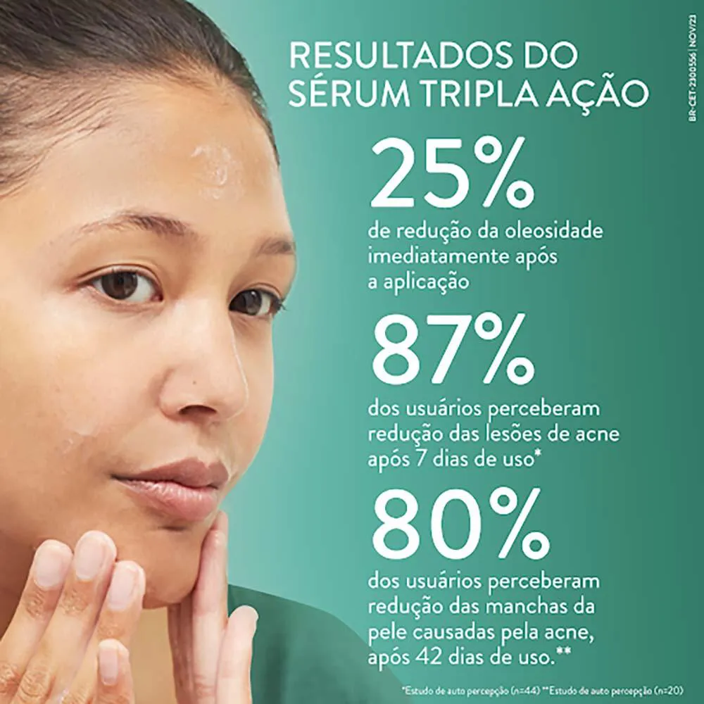 Cetaphil Oil Control Sérum Tripla-Ação para Controle de Oleosidade combina o poder de controlar a oleosidade, combater a acne e reduzir manchas de acne na pele, graças a combinação de ingredientes calmantes e refinados para uma pele mais suave e uniforme. Contém ácido salicílico, ácido succínico, PHA, niacinamida, zinco e prebióticos.