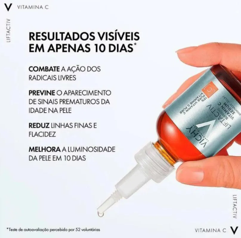 O novo LIFTACTIV vitamina c da Vichy é um sérum antioxidante que previne os sinais da idade causadas pelos estresses do dia a dia. Uma sinergia inovadora que combina 15% vitamina C pura + Extrato De Pinus Pinaster e Neohesperidina em uma solução dermatológica que atua no combate a ação dos radicais livres, prevenção ao aparecimento de sinais prematuros da idade da pele, mais firmeza, redução de linhas finas, tonalidade e melhora da luminosidade em apenas 10 dias.