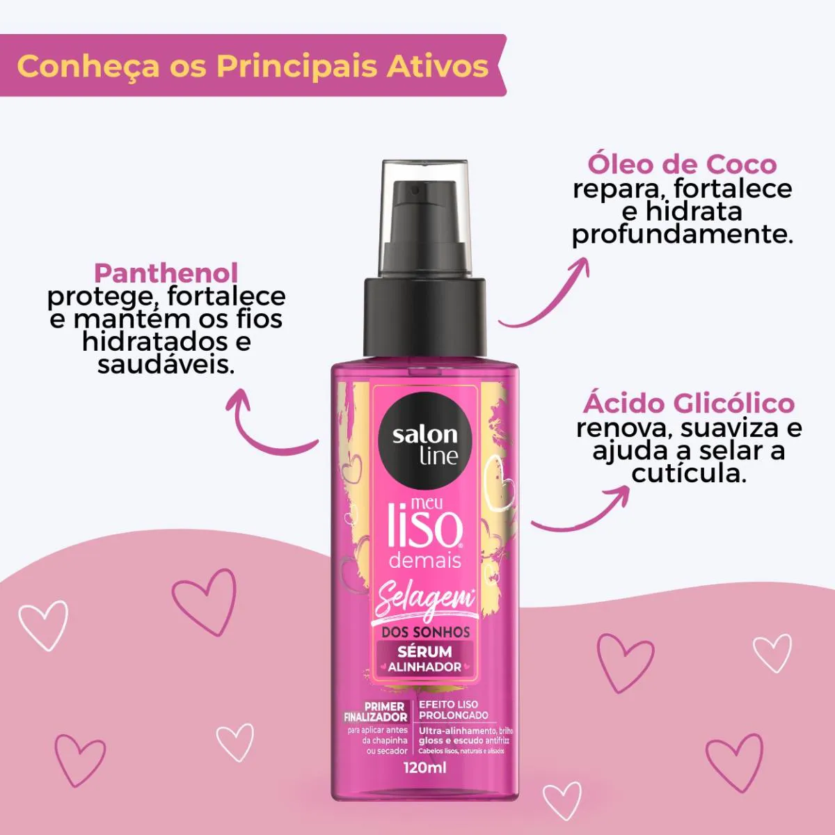 Com ativos nutritivos e fórmula leve, o Sérum Meu Liso Demais Selagem dos Sonhos garante cabelos lisos, macios, disciplinados e radiantes todos os dias.