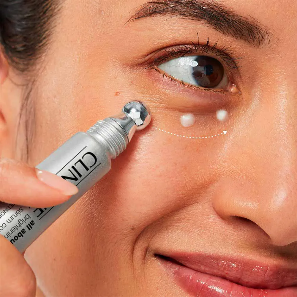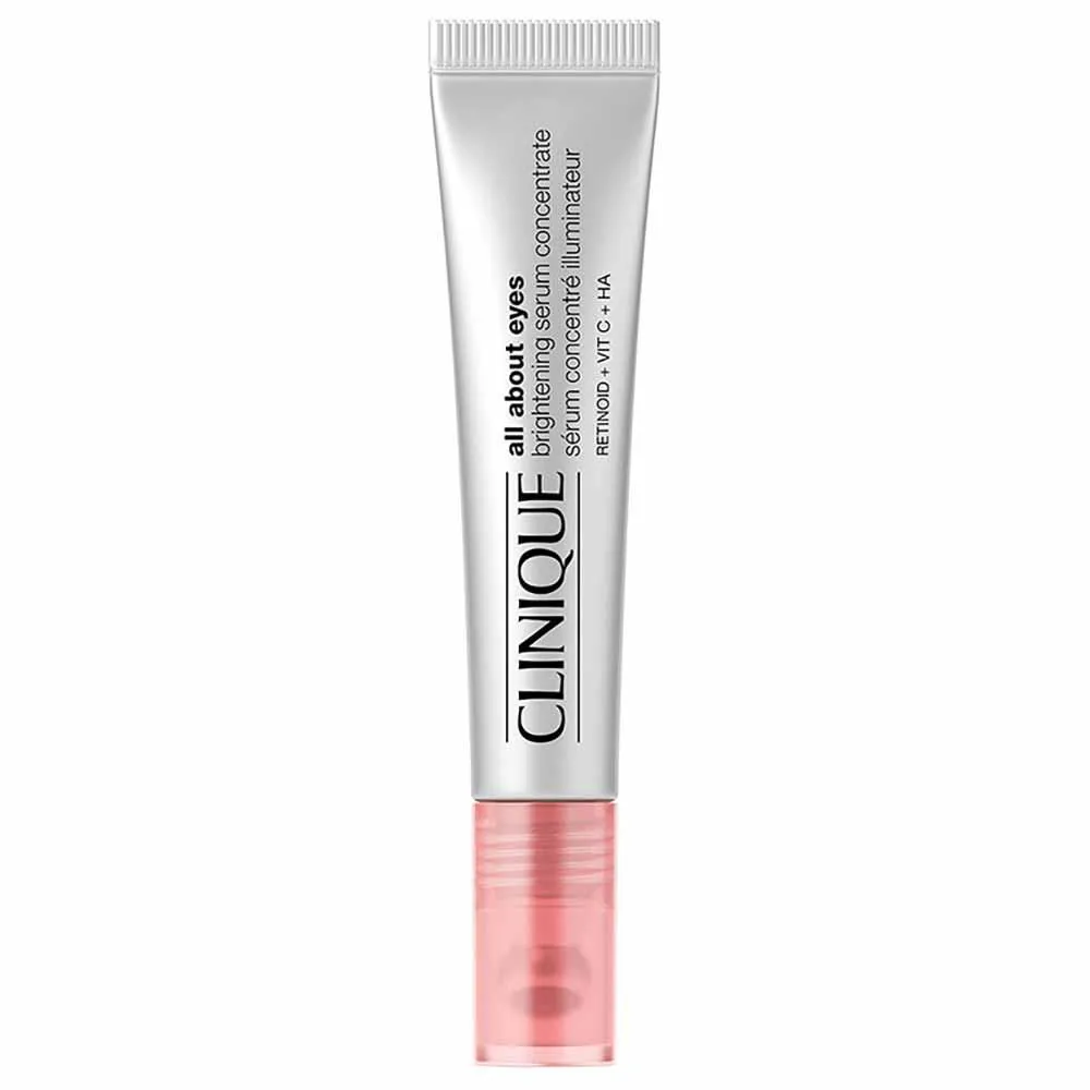 Sérum para Área dos Olhos Clinique - All About Eyes Brightening Concentrate O que é e para que serve? Sérum iluminador para a área dos olhos, formulado com um potente retinoide, mas suficientemente suave para ser aplicado na área dos olhos. O aplicador de precisão criado com a orientação de nossos dermatologistas ajuda a atingir áreas de difícil acesso abaixo dos olhos. Testado por dermatologistas. Testado contra alergias. 100% sem fragrâncias. Quais os Benefícios do All About Eyes Brightening Concentrate? - Ilumina instantaneamente a área abaixo dos olhos, proporcionando uma aparência mais radiante e descansada; - Reduz a aparência das olheiras ao longo do tempo; - Ajuda a suavizar a aparência da pele abaixo dos olhos; - Massagear a área dos olhos com o aplicador ajuda a reduzir a aparência de inchaço; - A ponta metálica refresca a pele; - Livre de Álcool, Fragrâncias, Óleo, Parabenos, Ftalatos, Lauril sulfato de sódio, Lauril éter sulfato de sódio, Corantes sintéticos; - Fórmula: Testado contra alergias, 100% sem fragrância, Testado por dermatologistas, Testado por oftalmologistas. Ativos: - Retinoide: Ajuda a acelerar a renovação celular natural da pele para uma área dos olhos visivelmente mais suave. - vitamina c: Ajuda a reduzir a aparência das olheiras com o uso contínuo. - Ácido hialurônico: Este ingrediente que mantém a hidratação, ajuda a criar um “reservatório de umidade” para proporcionar uma hidratação ideal. Nossa fórmula é habilmente combinada com dois pesos moleculares diferentes de ácido hialurônico. Modo de Uso: 1. Massageie suavemente sob os olhos com o aplicador. 2. Para começar: use 3 vezes por semana à noite. 3. Semana 2: use todas as noites. 4. Semana 3 e seguintes: use 2x ao dia. Precauções: Use protetor solar e limite a exposição ao sol durante o uso e na semana seguinte. Evite o contato com os olhos. Não use com outros produtos de retinol.