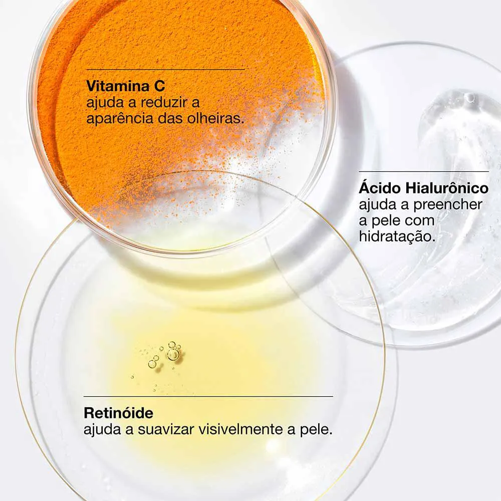 - Contém retinoide, vitamina C e ácido hialurônico.