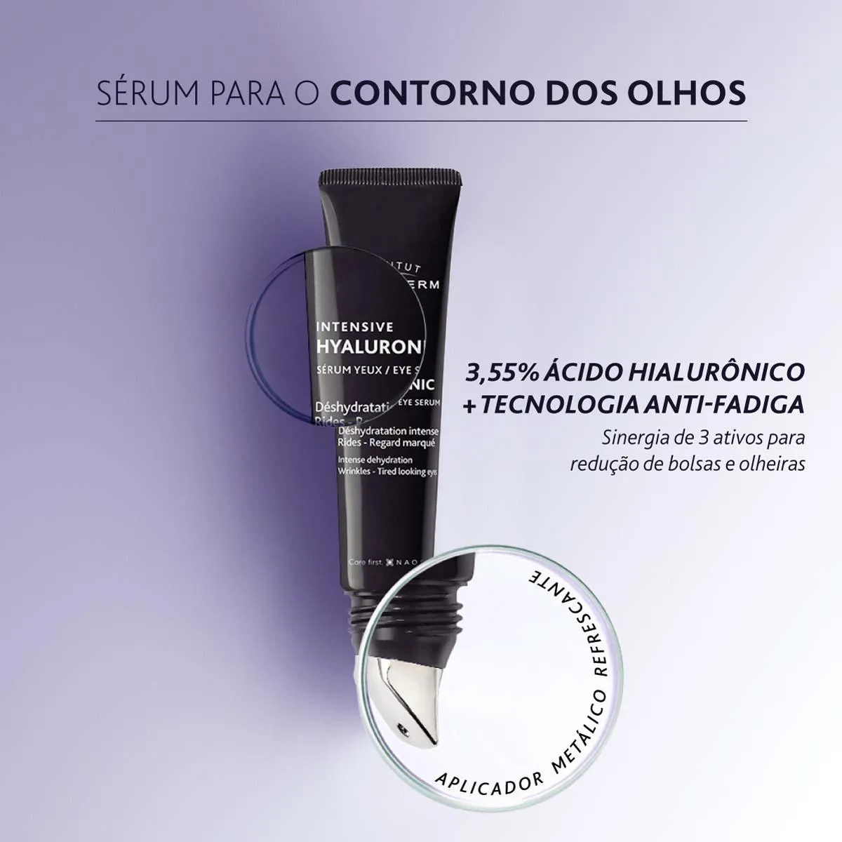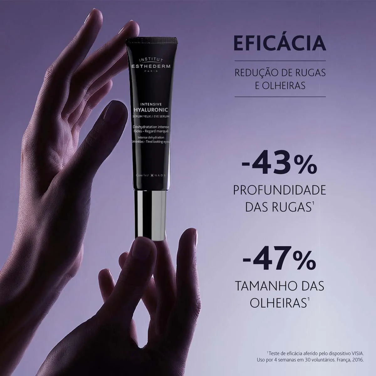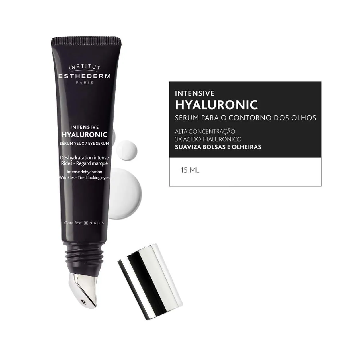 O Esthederm Intensive Hyaluronic Eye é um sérum anti-idade desenvolvido especialmente para a área dos olhos, composto por uma associação patenteada de 3 formas diferentes de ácido hialurônico em altas concentrações e tecnologia anti-fadiga. Seu objetivo é reduzir visivelmente rugas, linhas finas, bolsas e olheiras, além de redensificar e hidratar intensamente a região ao redor dos olhos, proporcionando um olhar iluminado e revigorado.