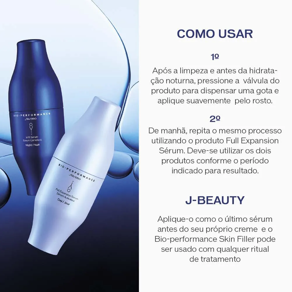Bio-Performance Skin Filler é um produto de preenchimento e expansão de dois séruns que refina a aparência da sua pele em um nível molecular. Sérum de preenchimento.