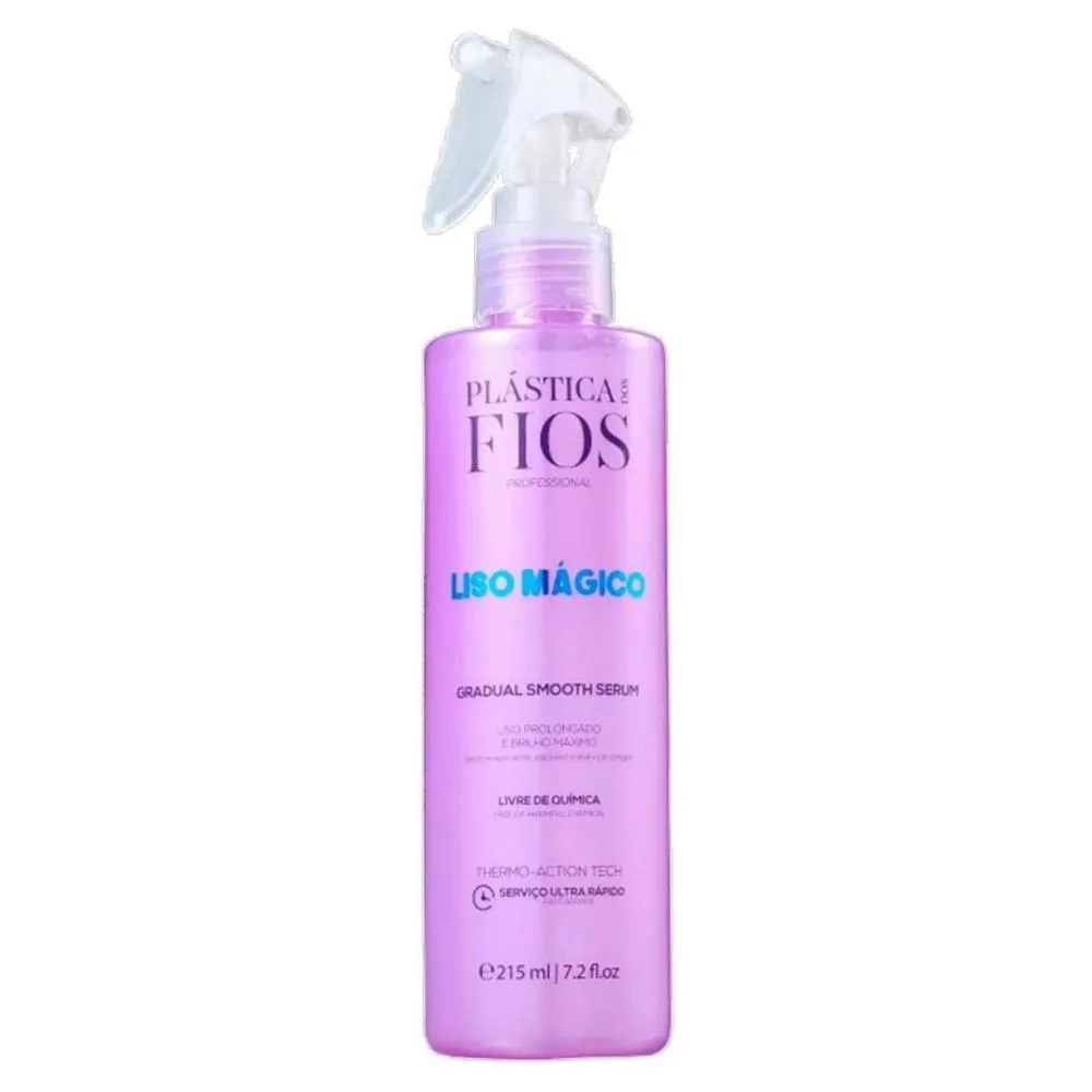 O sérum reativador da linha Plástica dos Fios Liso Mágico combina ativos poderosos para reativar o efeito de selagem térmica, alinhar cutículas e eliminar o frizz de forma duradoura. A fórmula conta com ShineSilk, que forma uma película protetora contra o calor de até 230 °C, junto do SoftLiss, que dá efeito memória para manter o liso por mais tempo, e extrato de açaí, rico em antioxidantes, que nutre profundamente a fibra capilar.Quando ativado pelo calor, esse trio de ativos realinha a estrutura dos fios, sela a cutícula e reativa a selagem, proporcionando um liso mais resistente e com brilho intenso. A textura leve do sérum facilita a absorção, desembaraça e distribui facilmente no comprimento e pontas, sem pesar. Ideal para fios que já passaram por um processo térmico ou selagem e que precisam de manutenção para prolongar o efeito liso.Fios lisos, alinhados, com brilho radiante, frizz reduzido e efeito liso prolongado.