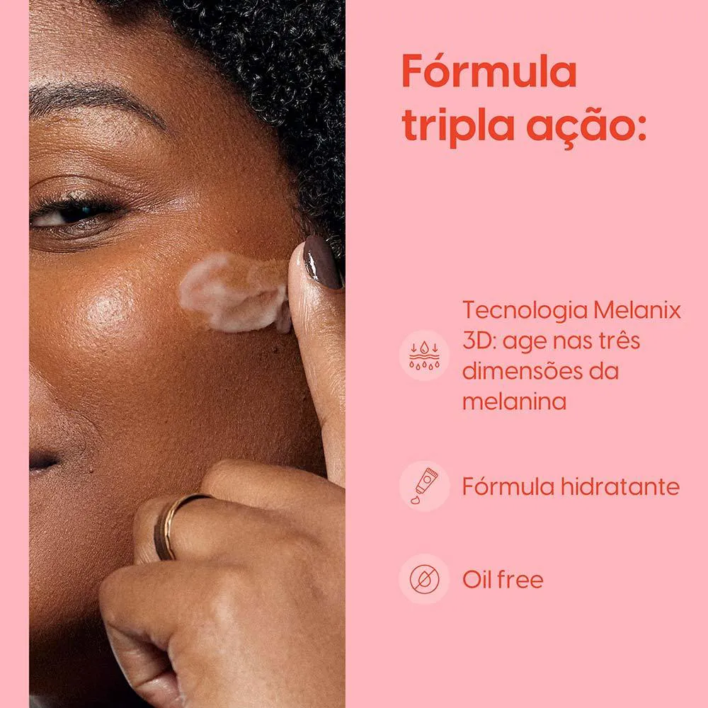 A tecnologia Melanix-3D tem tripla ação uniformizadora, agindo em diferentes etapas de concentração da melanina.