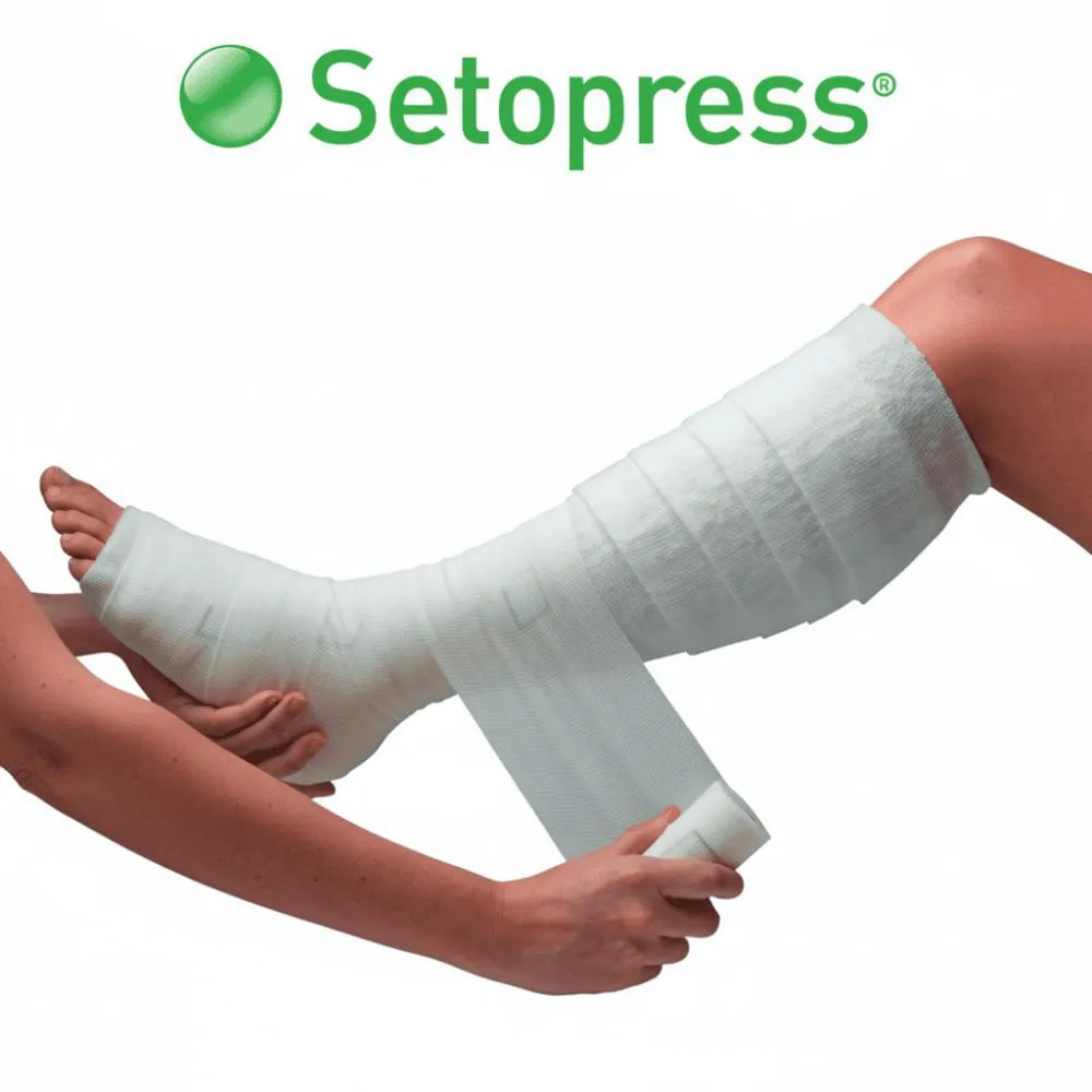 A Setopress é uma bandagem de referência mundial no tratamento de úlceras venosas. Seu sistema de marcações garante a compressão adequada, facilitando uma aplicação consistente e segura. Ideal para profissionais de saúde e clínicas que buscam praticidade, eficiência e resultados comprovados na terapia compressiva.