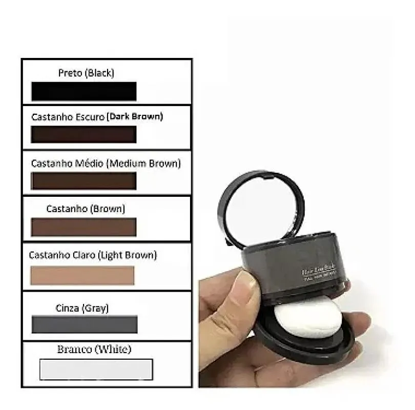 Sugestão de uso 1º Passo: Retire a esponja que encontra-se na parte de baixo da embalagem 2º passo: Passe suavemente a esponja no pó, atingindo a quantidade desejada. 3º passo: Aplique suavemente pela região do couro cabeludo até alcançar o resultado desejado. OBS: O produto tem uma ótima aderência, portanto, é ideal evitar contato direto com a mão e unhas. Para retirar o produto, lave bem a cabeça com shampoo. Resultado