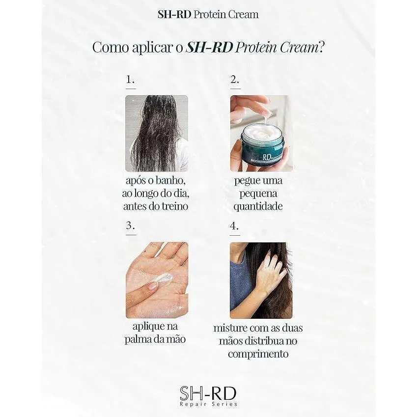 SH-RD PROTEIN CREAM Leave-in em creme que combina as propriedades umidificadoras dos aminoácidos, com a formação de um filme protetor proveniente das proteínas da seda. Além de devolver a vitalidade aos cabelos, protege contra as agressões do meio ambiente e processos químicos.
