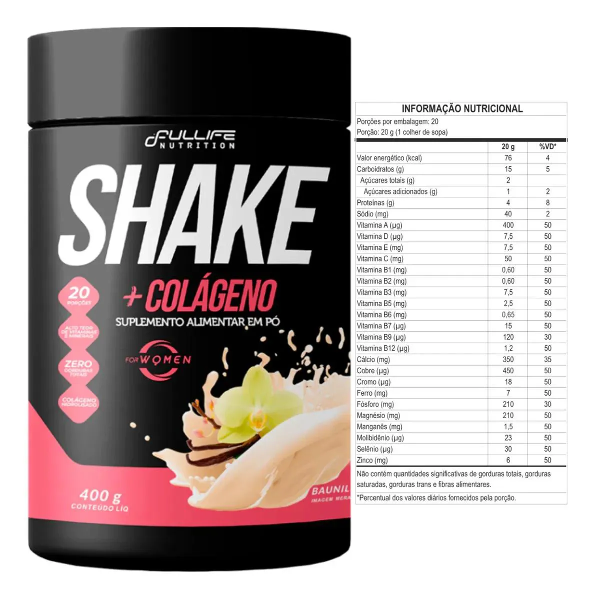 Shake Zero Açúcar Substituto de Refeição com Colágeno Fullife 400G Baunilha