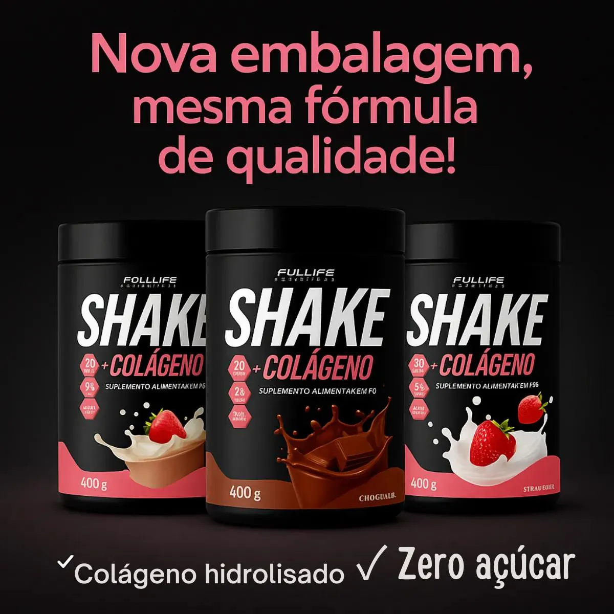 - O SHAKE SUBSTITUTO DE REFEIÇÃO FULLIFE é SEM GLUTEN e com COLAGENO com uma fórmula completa e exclusiva, shake for women foi desenvolvido com qualidade nutricional, sua fórmula contém colágeno hidrolisado que atua como uma auxiliar para fortalecimento da pele para quem esta em processo de emagrecimento, contém em sua composição vitaminas e minerais que essenciais.