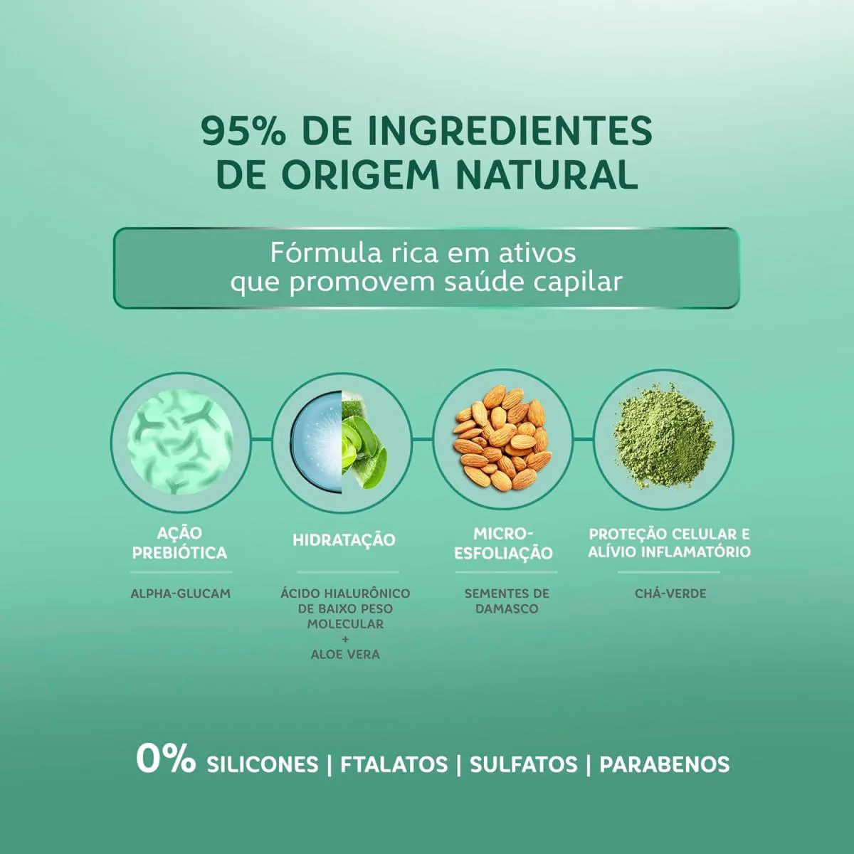 - Sua fórmula exclusiva possui ácido hialurônico, aloe vera, prebiótico natural, sementes de damasco e chá-verde que promovem limpeza profunda, controlando a oleosidade.