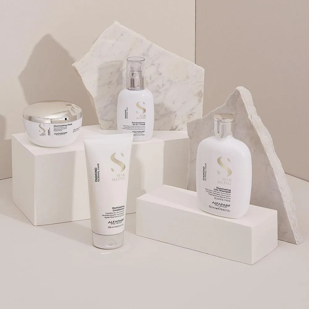O shampoo Semi Di Lino Diamond, além de limpar sem ressecar os fios nas lavagens, proporciona hidratação e adiciona maciez, realçando a luminosidade para que fiquem com o aspecto lindo e saudável. Indicado para cabelos normais a todos os tipos. Sua fórmula livre de sulfato e com ingredientes especiais hidrata e restaura a saúde dos fios, doando maciez, maleabilidade e movimento ao mesmo tempo em que formam um escudo protetor na fibra contra as agressões externas, realçando a luminosidade dos fios e prolongando seu brilho e aspecto saudável. Fórmula: