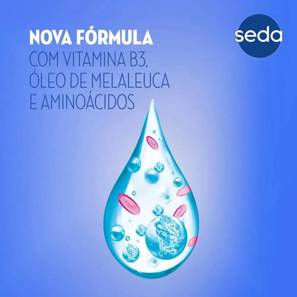 • O shampoo Seda Hidratação Diária com Infusão Ativa tem uma poderosa combinação de vitamina, óleo e proteína, desenvolvido para as necessidades do seu cabelo • Esse shampoo é indicado para couro cabeludo com caspa e todos os tipos de cabelos. Pode ser usado diariamente • A fórmula contém Vitamina B3, conhecida por ajudar na saúde do couro, Óleo de Melaleuca, conhecido por nutrir o couro cabeludo, e Aminoácidos, conhecido por dar força ao cabelo. • O Shampoo deixa o couro cabeludo protegido contra a caspa* • O shampoo com ingredientes poderosos atua no couro cabeludo de forma suave e eficaz. • O Shampoo anticaspa Hidratação Diária Seda foi desenvolvido para deixar seu cabelo do jeito que você gosta. Juntas e resistentes como nunca! A vida é cheia de possibilidades - tenha um cabelo incrível para todas elas. Está pronta para conhecer o novo Seda? O Shampoo Seda Anticaspa Hidratação Diária com Infusão Ativa tem uma poderosa combinação de vitamina, óleo e proteína, desenvolvido para as necessidades do seu cabelo. A fórmula contém Vitamina B3, conhecida por ajudar na saúde do couro cabeludo, Óleo de Melaleuca, conhecido por nutrir o couro cabeludo, e Aminoácidos, conhecidos por darem força ao cabelo. Nossa fórmula com ingredientes poderosos atua no couro cabeludo de forma suave e eficaz, deixando o cabelo protegido contra a caspa* sem ressecá-lo. O Shampoo Anticaspa Hidratação Diária Seda é indicado para couro cabeludo com caspa e todos os tipos de cabelos. Pode ser usado diariamente. O Shampoo Seda Anticaspa Hidratação Diária foi desenvolvido para deixar seu cabelo do jeito que você gosta. Nossa garrafa é feita com plástico 100% reciclável. Seda possui o logo PETA, o que significa que não testa seus produtos em animais em nenhum lugar do mundo. Pronta? Coloque na mão, aplique no cabelo, massageie suavemente e enxágue. Seu cabelo ficará livre de caspa*, sedoso e cheiroso do jeitinho que você gosta! Juntas e resistentes como nunca! #JuntasArrasamos *escamas visíveis com o uso regular.