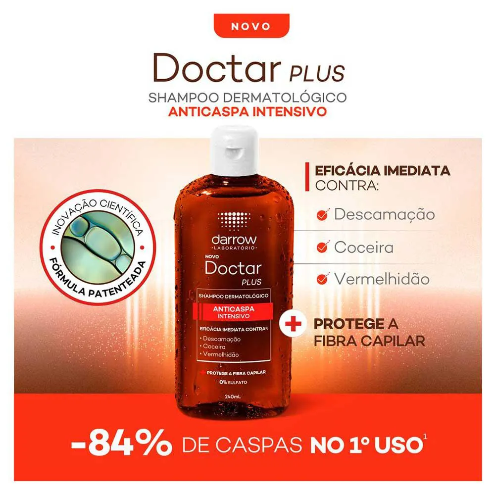 O Shampoo Anticaspa Intensivo Darrow – Doctar Plus é um tratamento dermatológico especializado para combater a descamação intensa do couro cabeludo, formulado com ativos potentes para tratar os sintomas da caspa. Sua função principal é reduzir a caspa, aliviar a coceira, diminuir a vermelhidão e proteger a fibra capilar, proporcionando até 84% menos caspa já no primeiro uso.