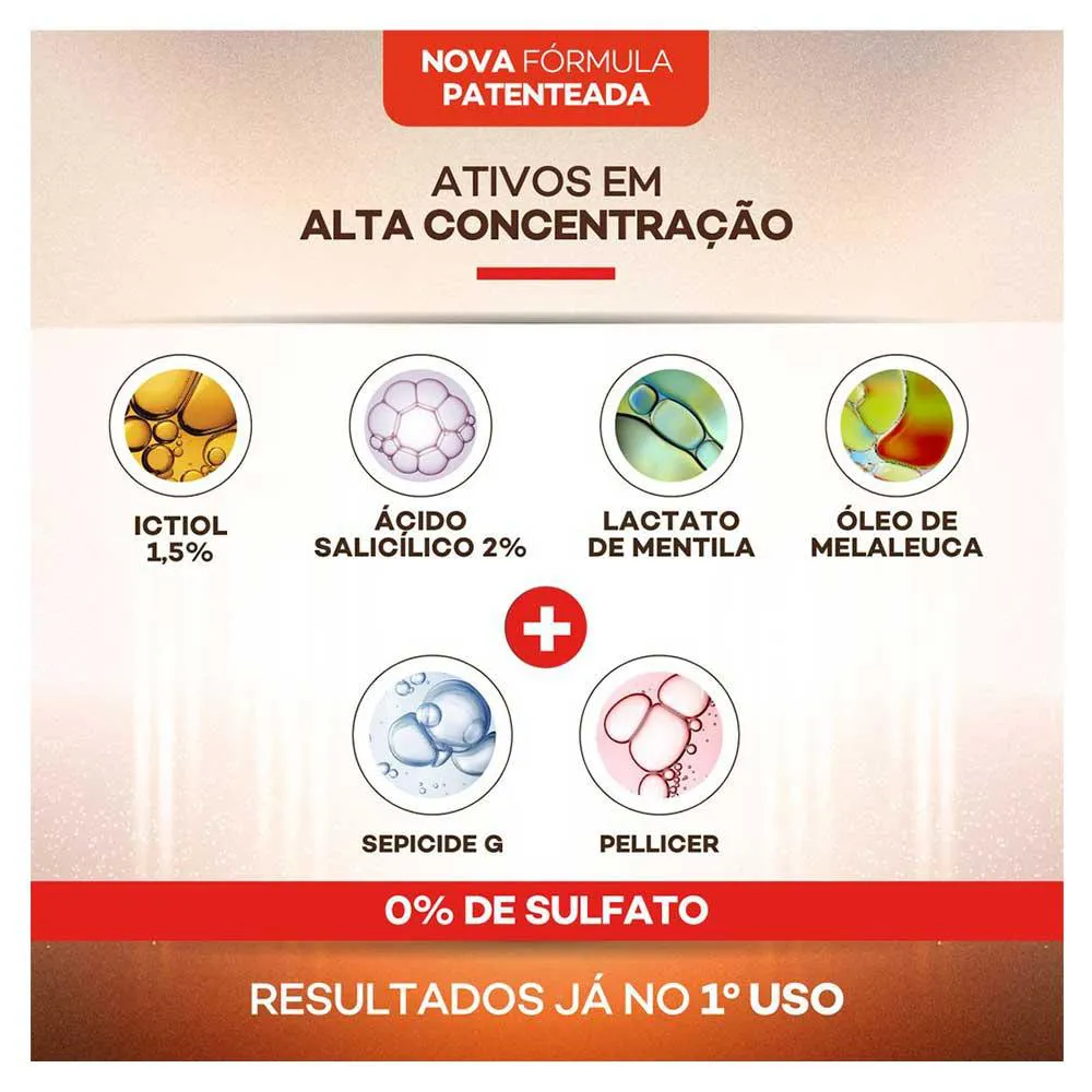 - Reduz até 84% das caspas já no primeiro uso.