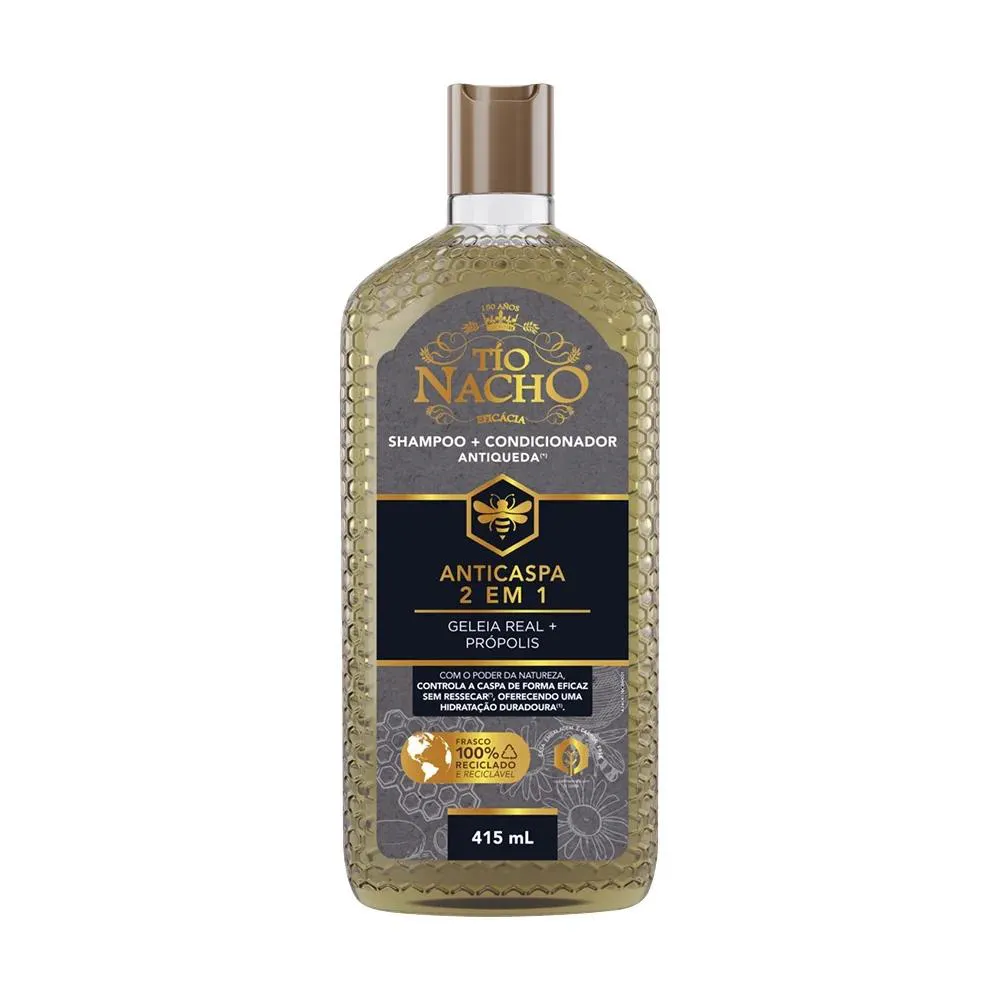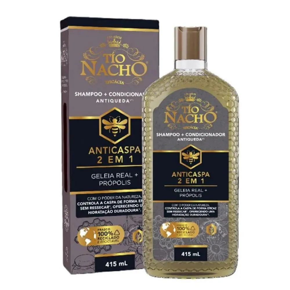 O que é e para que serve o shampoo anticaspa Tío Nacho 2 em 1?O Shampoo Anticaspa Tío Nacho 2 em 1 415ml é um shampoo anticaspa com fórmula 2 em 1 que combina Geleia Real e Extrato de Própolis. Desenvolvido para combater a caspa do couro cabeludo, ele reduz a sensação de coceira, fortalece os fios, hidrata e facilita o pentear. Ideal para quem busca cabelos saudáveis, livres de caspa e com aparência revitalizada.