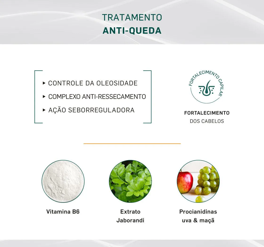 - Contém jaborandi, vitamina B6 e procianidinas.