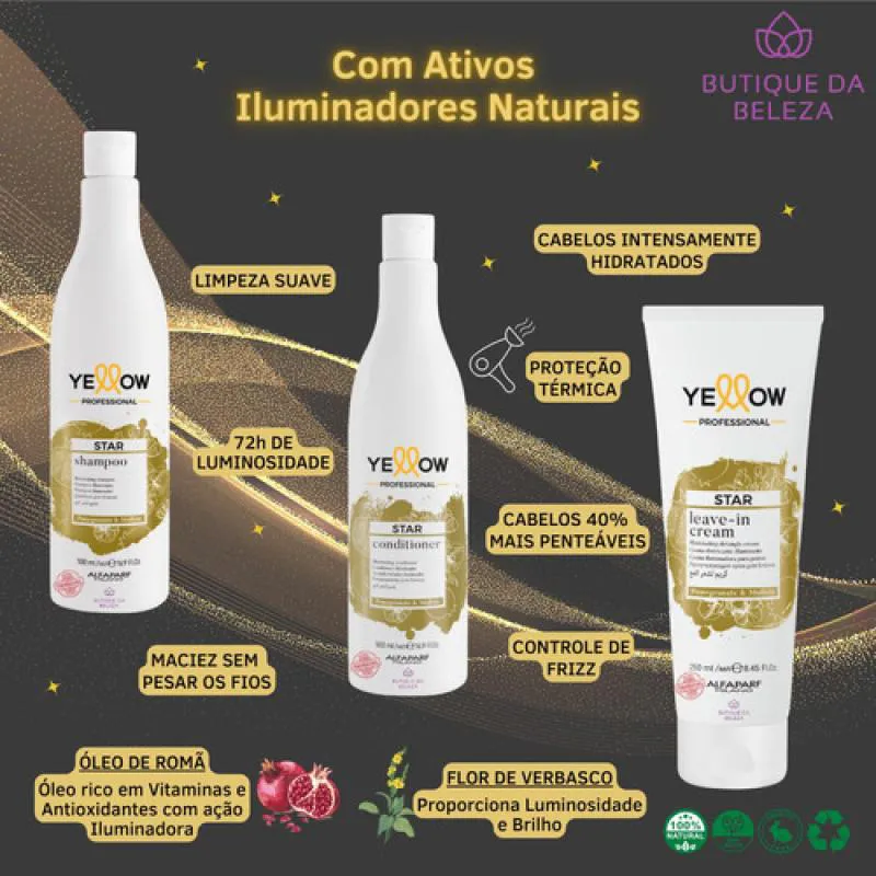 Shampoo Condicionador 500Ml e Leave-In 250Ml Yellow Star