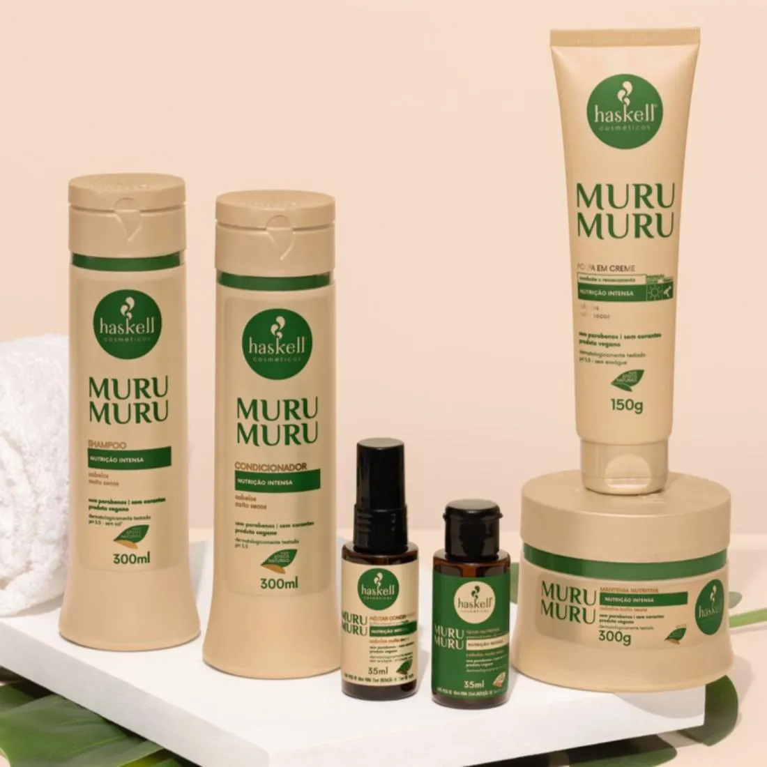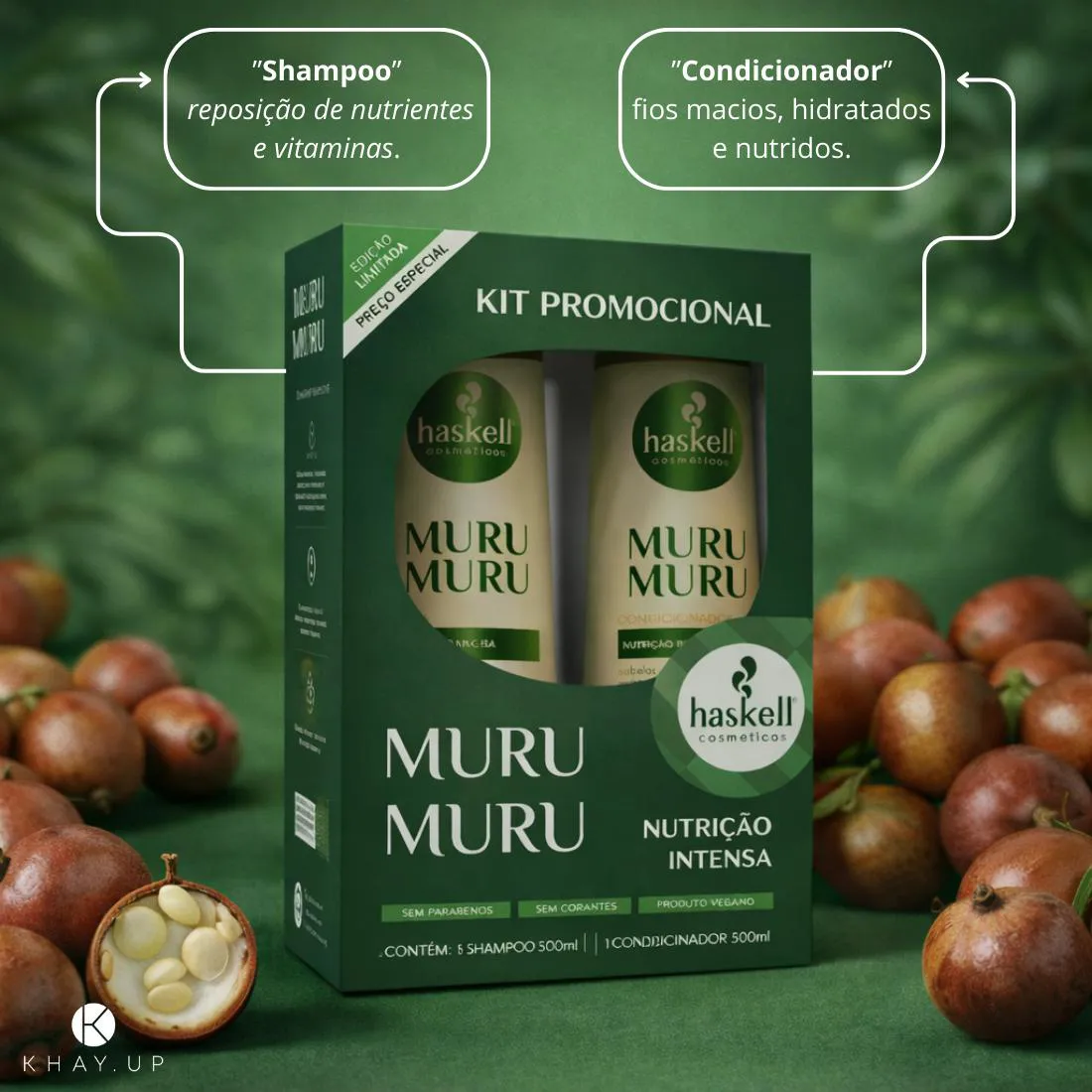 Conheça um pouco mais! O Kit shampoo e condicionador Murumuru Haskell foi desenvolvido especialmente para cabelos secos, opacos e sem elasticidade. Enriquecido com manteiga de murumuru, ativo natural altamente nutritivo, o tratamento promove hidratação profunda, reposição lipídica e devolve a maciez aos fios. A fórmula possui pH equilibrado, é vegana e livre de parabenos e corantes, proporcionando uma limpeza suave sem ressecar. O condicionador auxilia no selamento das cutículas, reduz o frizz e melhora a maleabilidade dos cabelos. Ideal para quem busca nutrição intensa e fios mais saudáveis desde a primeira aplicação. Contém: 01 Shampoo Murumuru Haskell 500ml 01 Condicionador Murumuru Haskell 500ml Você vai amar! A textura cremosa facilita a aplicação e envolve os fios com uma sensação de cuidado imediato. O cabelo fica mais macio, nutrido, com brilho natural e toque sedoso, sem pesar. Indicado para quem sofre com fios ressecados no dia a dia, processos químicos ou exposição frequente ao sol. Pega essas dicas! Use o shampoo massageando suavemente o couro cabeludo e enxágue bem Aplique o condicionador apenas no comprimento e pontas Para melhores resultados, utilize a linha Murumuru completa Pode ser usado diariamente ou conforme a necessidade dos fios Evite aplicar o condicionador na raiz para não pesar
