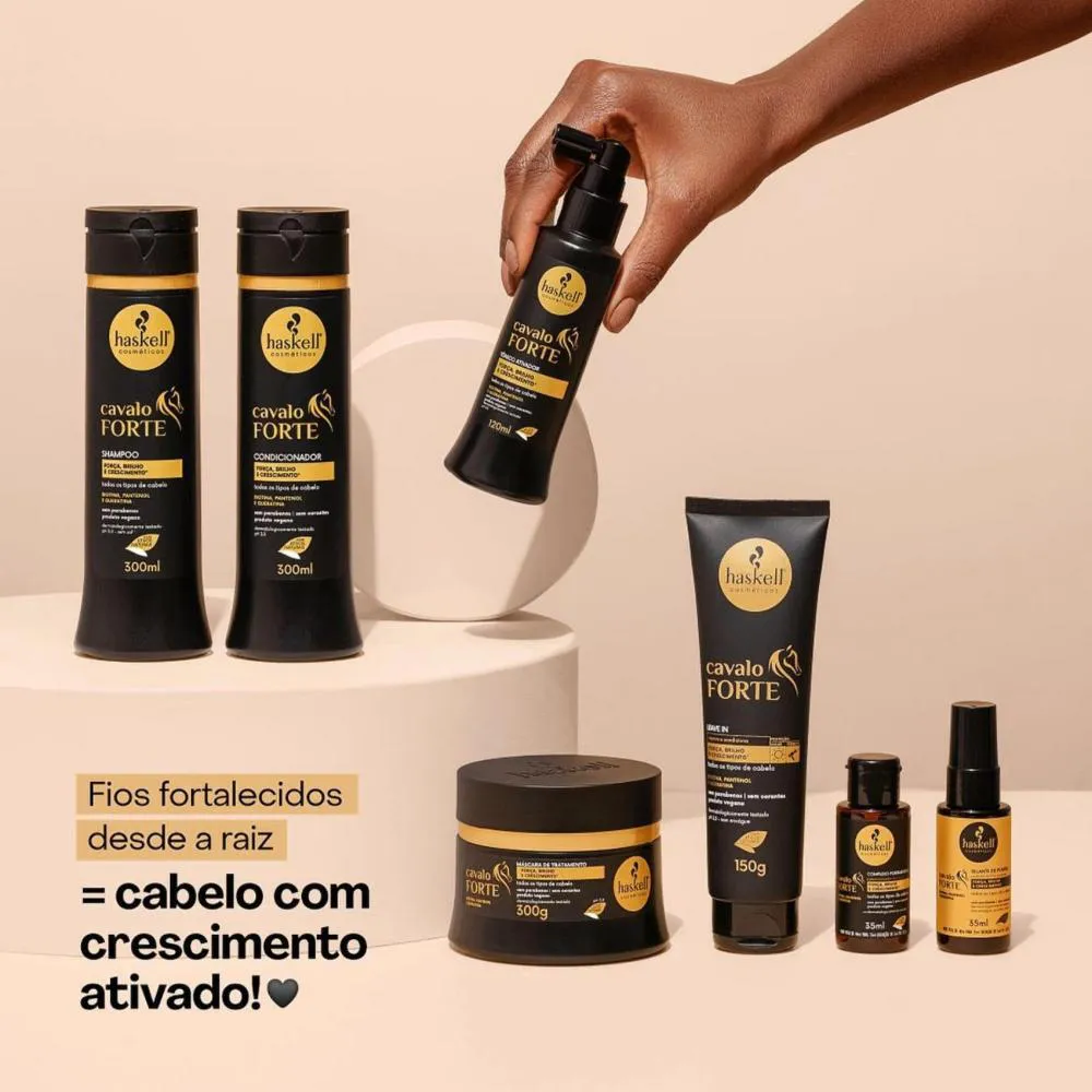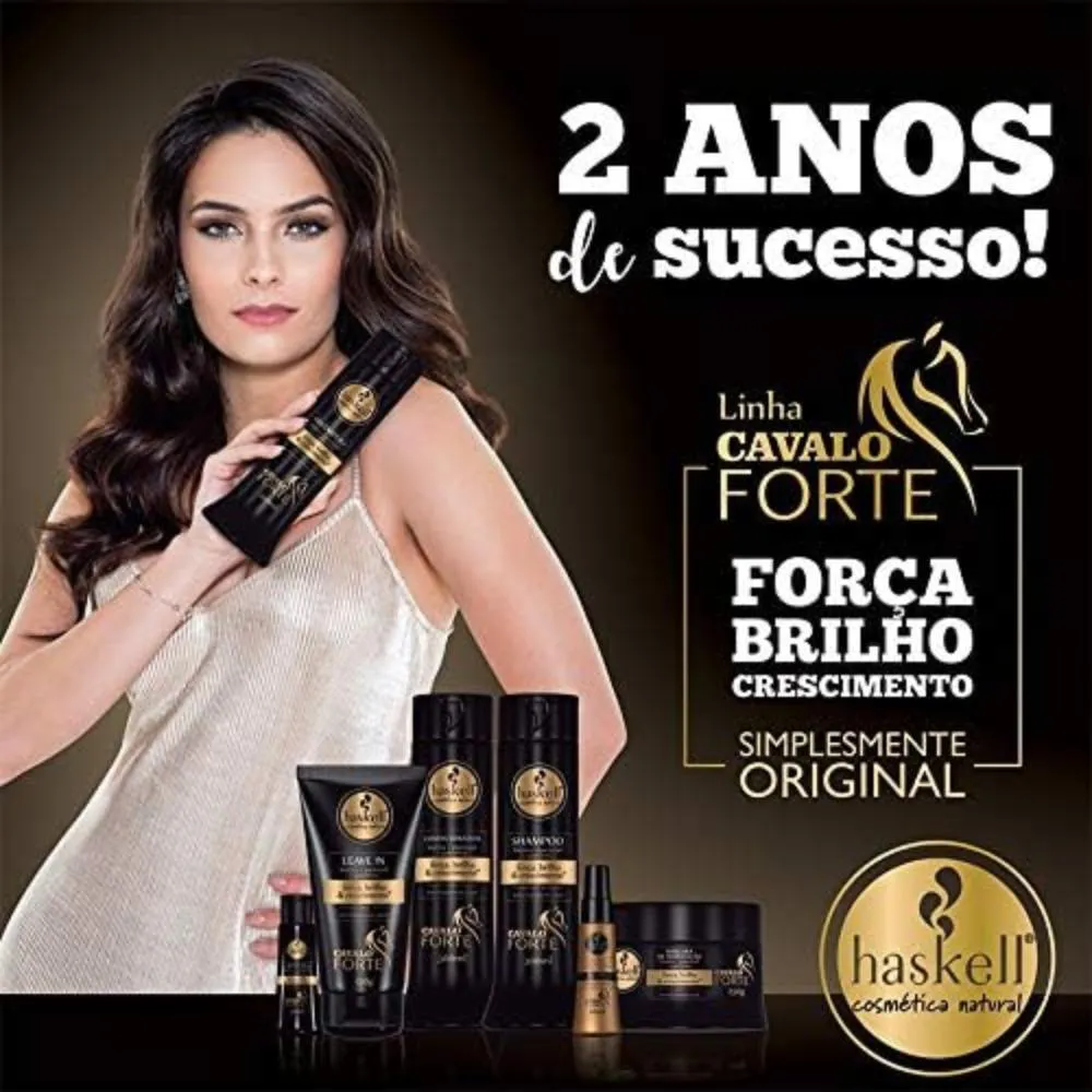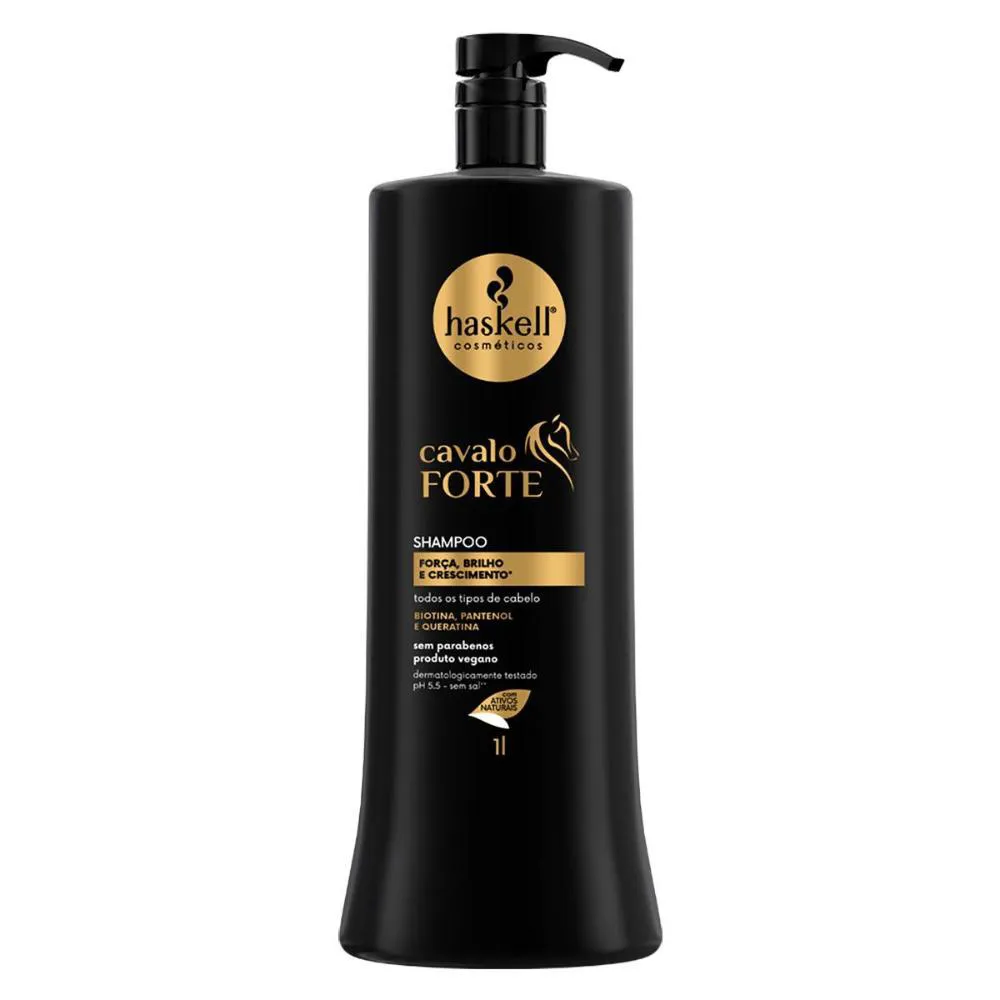 O shampoo Haskell Cavalo Forte foi desenvolvido para promover força, brilho e crescimento saudável aos cabelos enfraquecidos ou danificados. Sua fórmula atua diretamente na fibra capilar, ajudando a recuperar a resistência dos fios, reduzir a quebra e devolver vitalidade desde a primeira aplicação, sem ressecar o couro cabeludo.Enriquecido com o Complexo Cavalo Forte, que combina biotina, pantenol e queratina, estimula o crescimento saudável, melhora a elasticidade e fortalece a estrutura capilar. A biotina auxilia no fortalecimento e no crescimento dos fios, o pantenol garante hidratação equilibrada e maciez, enquanto a queratina contribui para a reconstrução da fibra e aumento da resistência.A limpeza é eficiente e suave, removendo impurezas sem agredir, deixando os cabelos mais encorpados, brilhantes e preparados para receber os próximos passos do tratamento. Indicado para cabelos fracos, danificados, quebradiços ou com crescimento lento.