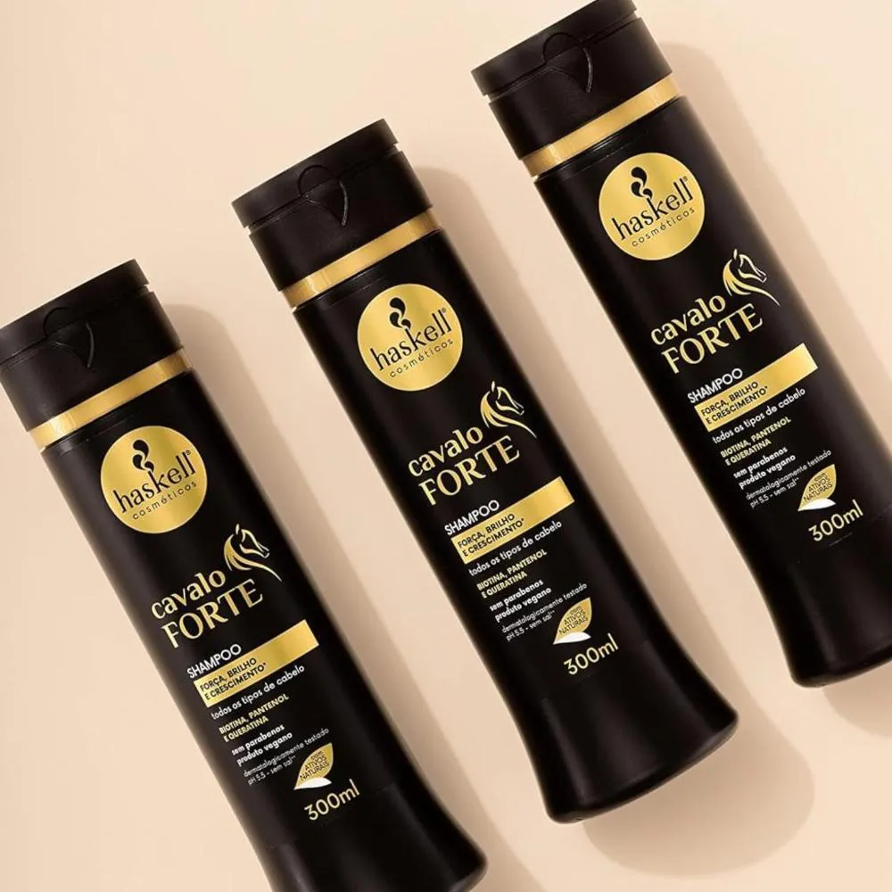 O shampoo Haskell Cavalo Forte foi formulado para fortalecer a fibra capilar, estimular o crescimento saudável e devolver vitalidade aos fios fragilizados. Sua composição combina biotina, pantenol e queratina, ativos reconhecidos por atuar diretamente na estrutura do cabelo, auxiliando na reconstrução, no aumento da resistência e na redução da quebra.A ação fortalecedora e antioxidante contribui para cabelos mais encorpados, elásticos e brilhantes, enquanto a limpeza equilibrada remove impurezas sem ressecar ou agredir o couro cabeludo. O uso contínuo melhora a performance dos fios ao longo do comprimento e prepara o cabelo para absorver melhor os tratamentos seguintes da linha.Indicado para cabelos fracos, danificados ou com crescimento lento, o shampoo entrega maciez, força e aparência saudável desde as primeiras aplicações, mantendo os fios limpos, leves e visivelmente mais resistentes.