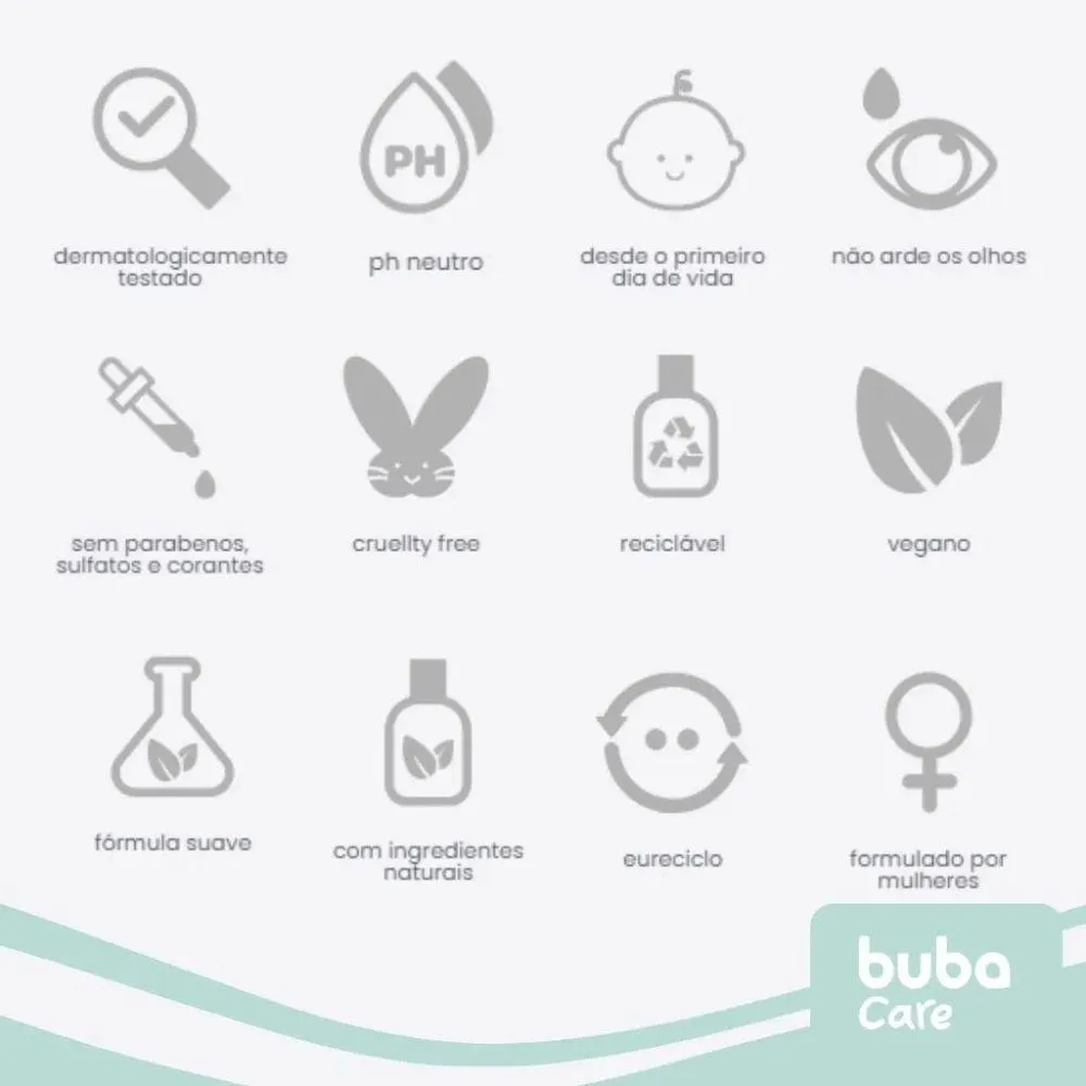 Destaques: Extrato de camomila: Um ingrediente natural, que oferece efeito calmante, refrescante e protetor. Tudo isso sem clarear o cabelo do seu bebê. Hidrata e nutre: Deixa os cabelos mais saudáveis, hidratados, nutridos e fáceis de pentear. Fórmula suave: Desenvolvidos para a pele sensível do bebê, nossos produtos agem com delicadeza. Características: Extrato de camomila para efeito calmante e protetor. Hidrata e nutre, deixando os cabelos saudáveis e fáceis de pentear. Fórmula suave, desenvolvida para a pele sensível do bebê. Dermatologicamente testado e pH balanceado. Não arde os olhos. Livre de parabenos, sulfatos e corantes. Cruelty-free, reciclável e vegano. Selo eureciclo. Formulado por mulheres. Especificações: Ingredientes: Aqua/Água, Cetearyl alcohol, Behentrimonium chloride, Parfum, Cetrimonium chloride, Glycerin, Phenoxyethanol, Hydroxyethyl cellulose, Sodium gluconate, Guar hydroxypropyl trimonium chloride, Ethylhexyl -glycerin, Chamomilla recutita flower extract. Modo de uso: Após lavar os cabelos com o shampoo Buba Care, aplique o condicionador delicadamente e enxágue bem. Pode ser usado diariamente. Precauções: Evitar contato com os olhos; em caso de irritação, suspender o uso e procurar um médico. Uso externo. Não ingerir. Manter fora do alcance de crianças. Peso: 400 g