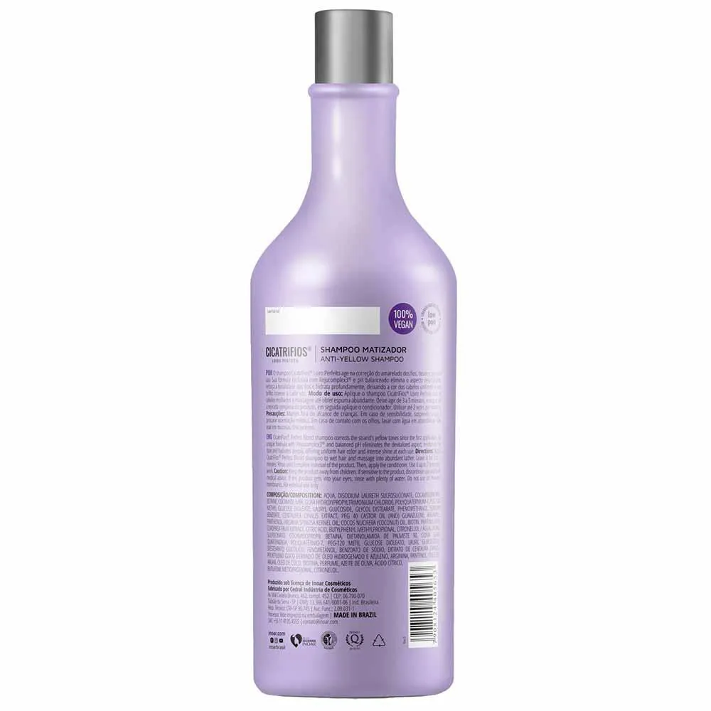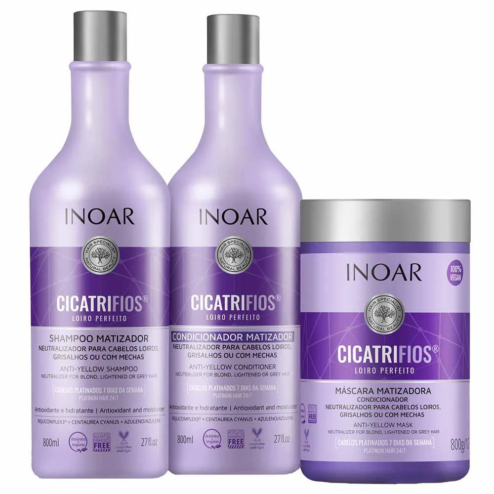 O Shampoo Inoar Cicatrifios Loiro Perfeito é um tratamento capilar especializado para cabelos loiros, formulado com Rejucomplex3® e pH balanceado, destinado a corrigir o amarelamento dos fios e manter sua tonalidade vibrante. Seu principal objetivo é cuidar de cabelos loiros naturais ou tingidos, atuando na correção do tom amarelado, hidratação profunda e fortalecimento da estrutura capilar.