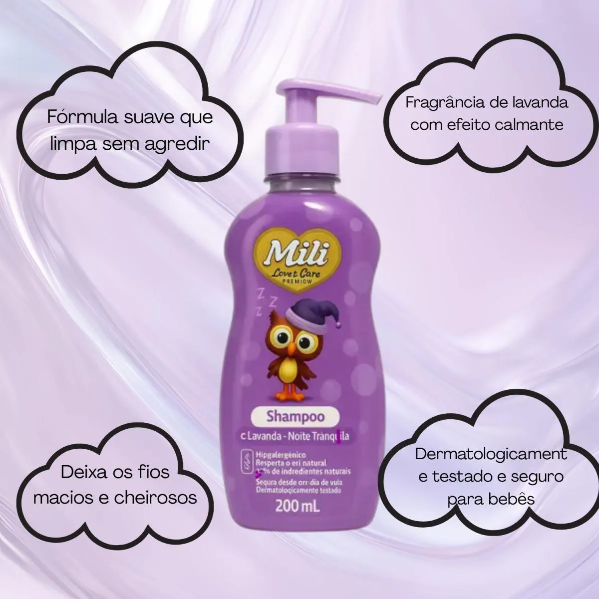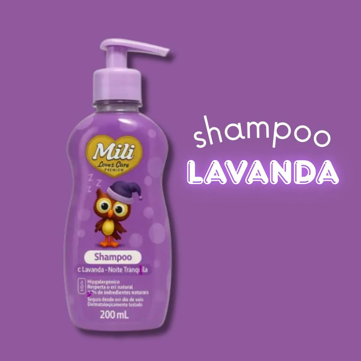 1 Shampoo Lavanda Noite Tranquila 200ml – Love&Care Mili Imagens Meramente Ilustrativas. Todas as Informações Divulgadas são de Responsabilidade Exclusiva do Fabricante/fornecedor.