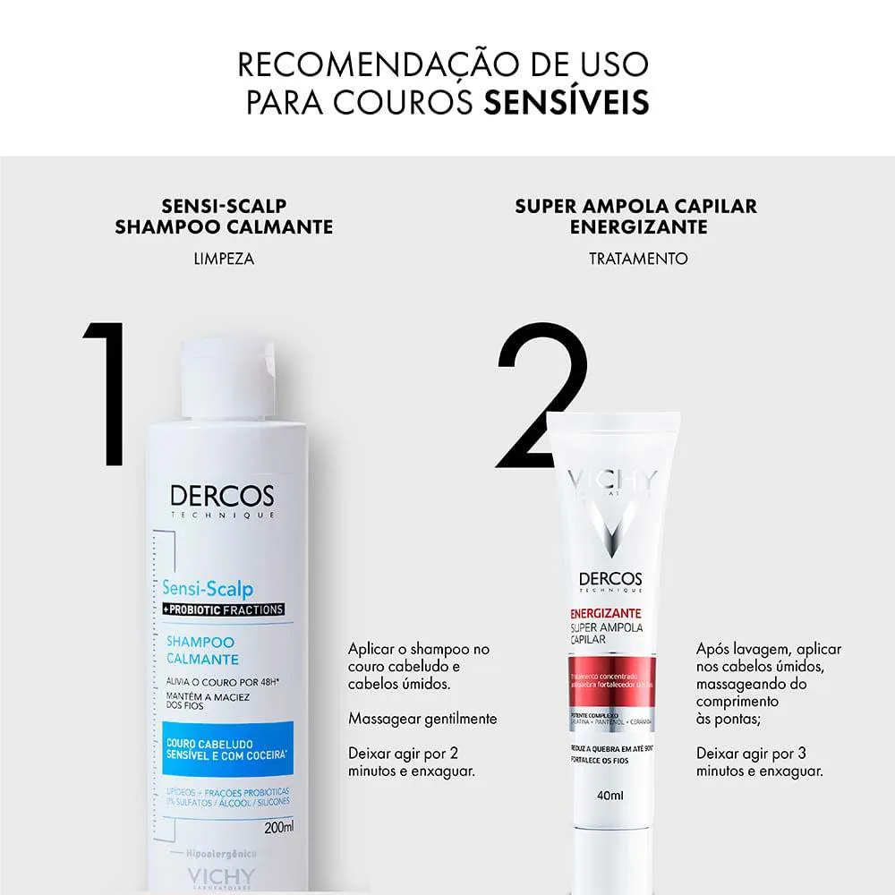 Sofre com couro cabeludo sensível? O Shampoo Vichy Dercos SensiScalp Probiotic é a solução. Desenvolvido para acalmar e aliviar o desconforto instantaneamente, sua fórmula probiótica restaura o equilíbrio e a saúde dos seus cabelos, proporcionando conforto duradouro e fios visivelmente mais saudáveis.