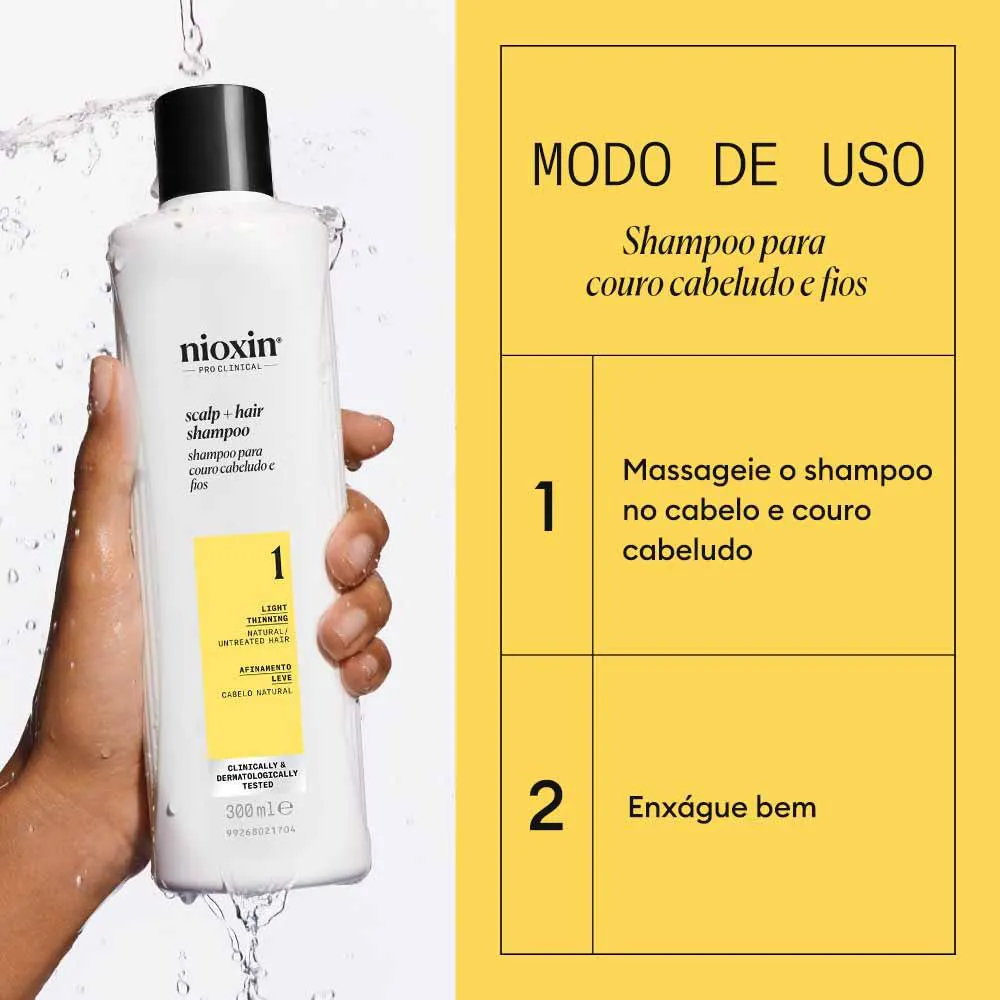 O Shampoo de Limpeza de Nioxin é a primeira etapa do tratamento de 3 partes desenvolvido para fortalecer o cabelo e ampliar sua estrutura contra afinamento.