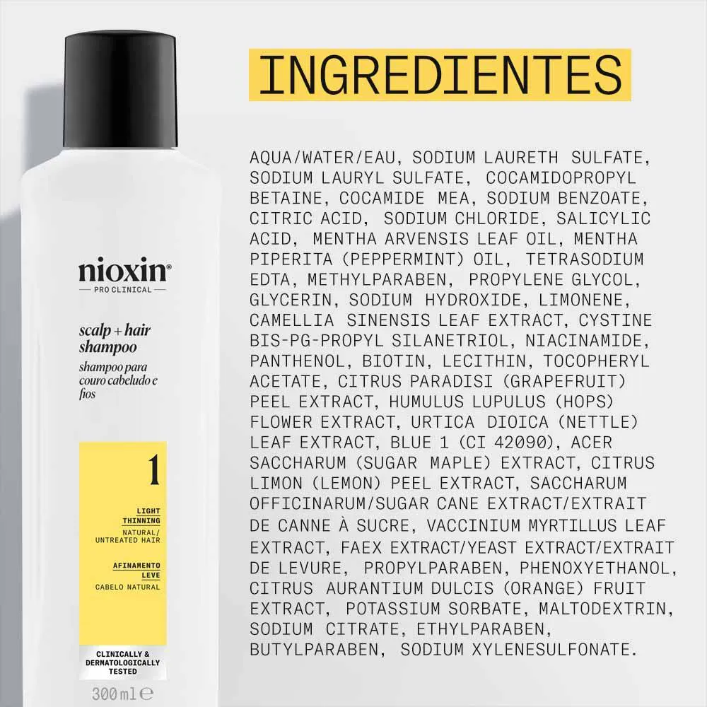 • Utilize junto ao Therapy Conditioner e o Scalp & Hair Treament Leave-in do Sistema 1 de Nioxin.