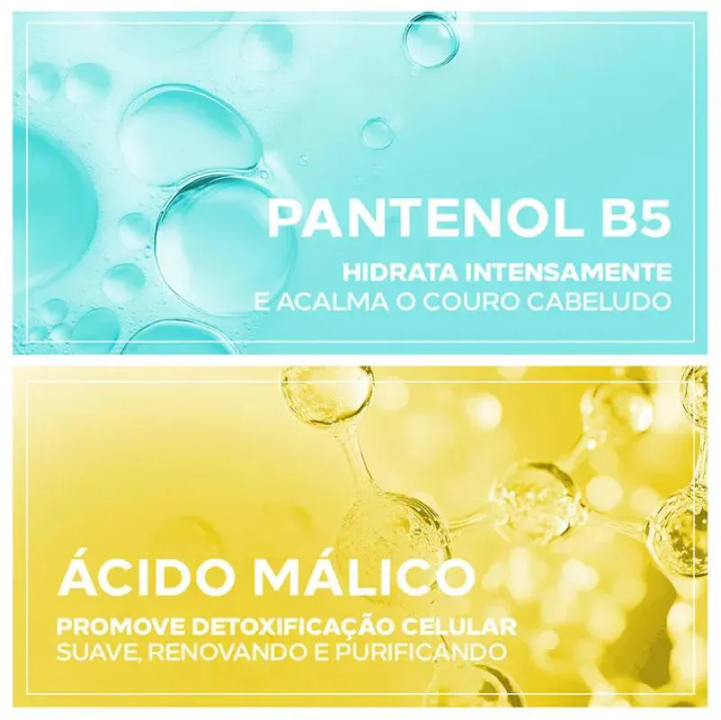 Mais do que um simples shampoo, é um tratamento completo para a saúde do couro cabeludo e dos fios. Sua formulação avançada combina Vitamina C, Vitamina B3 (Niacinamida), Vitamina B5 (Pantenol), Zinco PCA e Ácido Málico, oferecendo benefícios que vão além da limpeza: promove purificação, detoxificação, hidratação, equilíbrio do pH e ação antioxidante intensa.