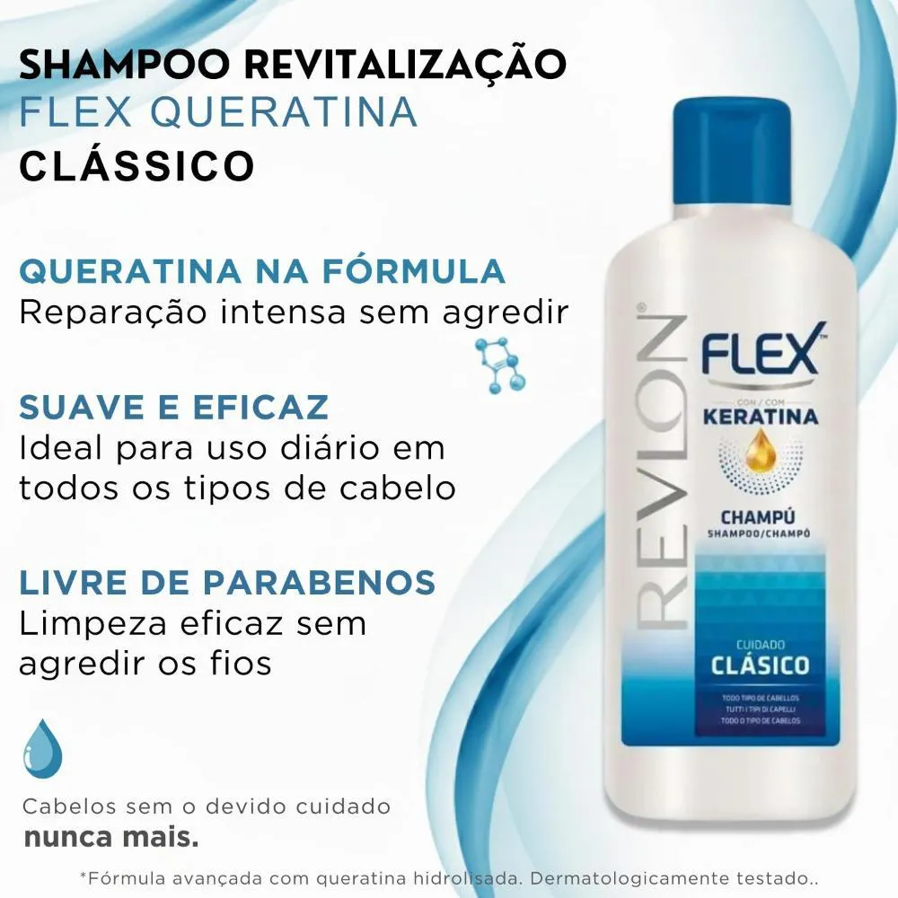 Shampoo Revlon Flex Queratina Cuidado Clássico 650Ml