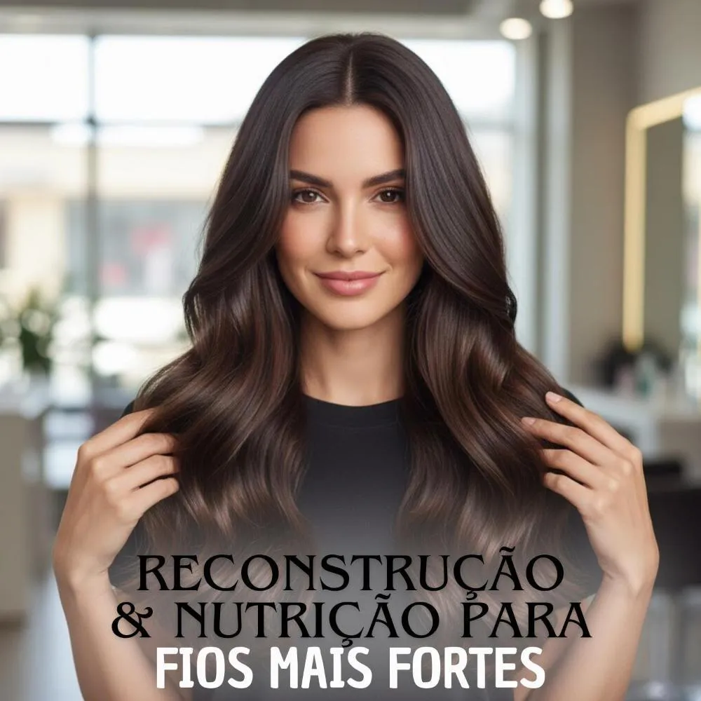 Cabelos limpos, reconstruídos e fortalecidos, com toque sedoso, brilho saudável e aparência reparada.