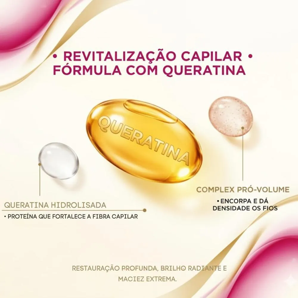 Cabelos limpos, com volume natural, brilho intenso e toque leve, mantendo o movimento e a vitalidade por mais tempo.