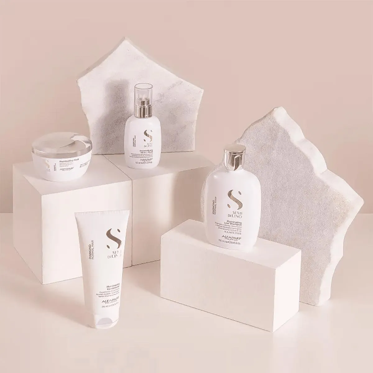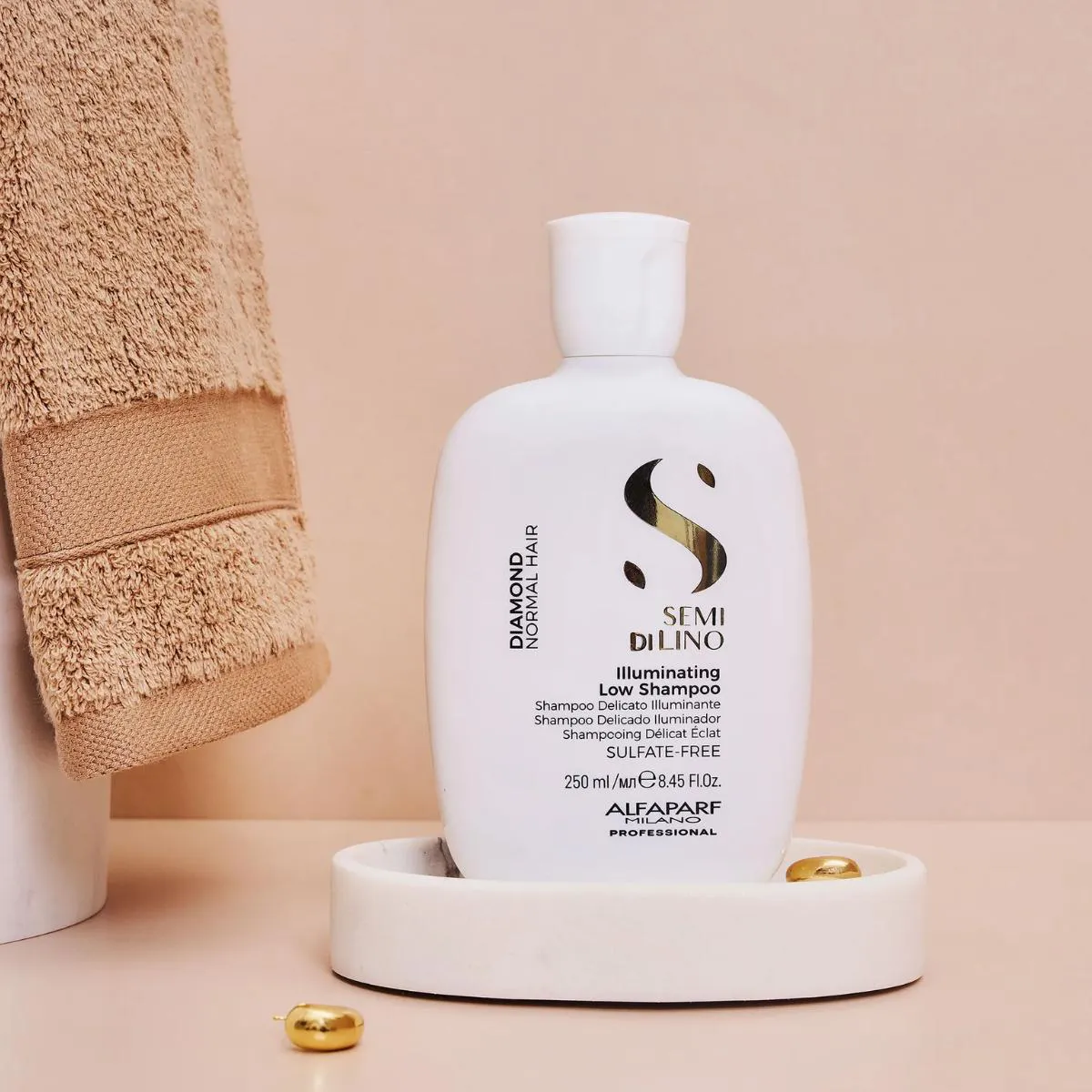 O Shampoo Semi Di Lino Diamond Illuminating é um produto capilar profissional da marca Alfaparf, desenvolvido especificamente para iluminar e tratar os cabelos. Seu objetivo principal é limpar os fios de forma delicada, proporcionando brilho intenso, hidratação e proteção, além de ajudar a realçar a luminosidade natural dos cabelos, deixando-os mais sedosos, macios e com aparência saudável.
