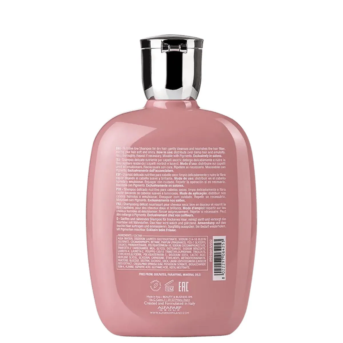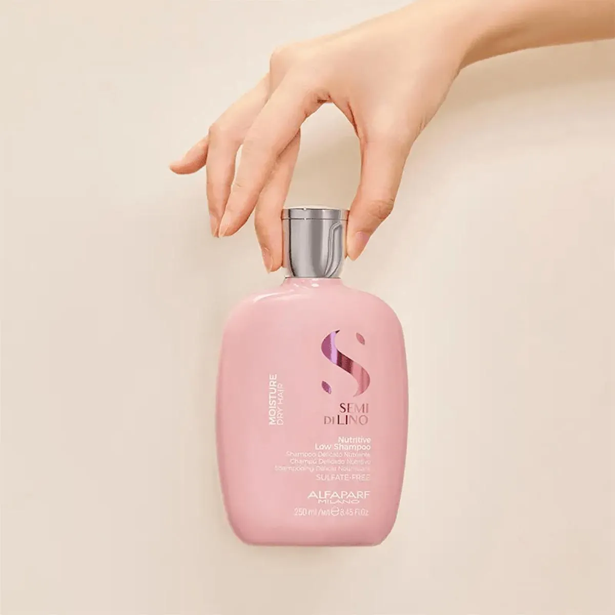O Shampoo Semi Di Lino Moisture Nutritive Low é um produto capilar da marca Alfaparf, desenvolvido especificamente para hidratar e nutrir os cabelos. Serve para limpar os fios delicadamente, proporcionando hidratação intensa, controlando a umidade e melhorando a maciez e brilho dos cabelos, especialmente indicado para cabelos secos ou com tendência a ressecamento.
