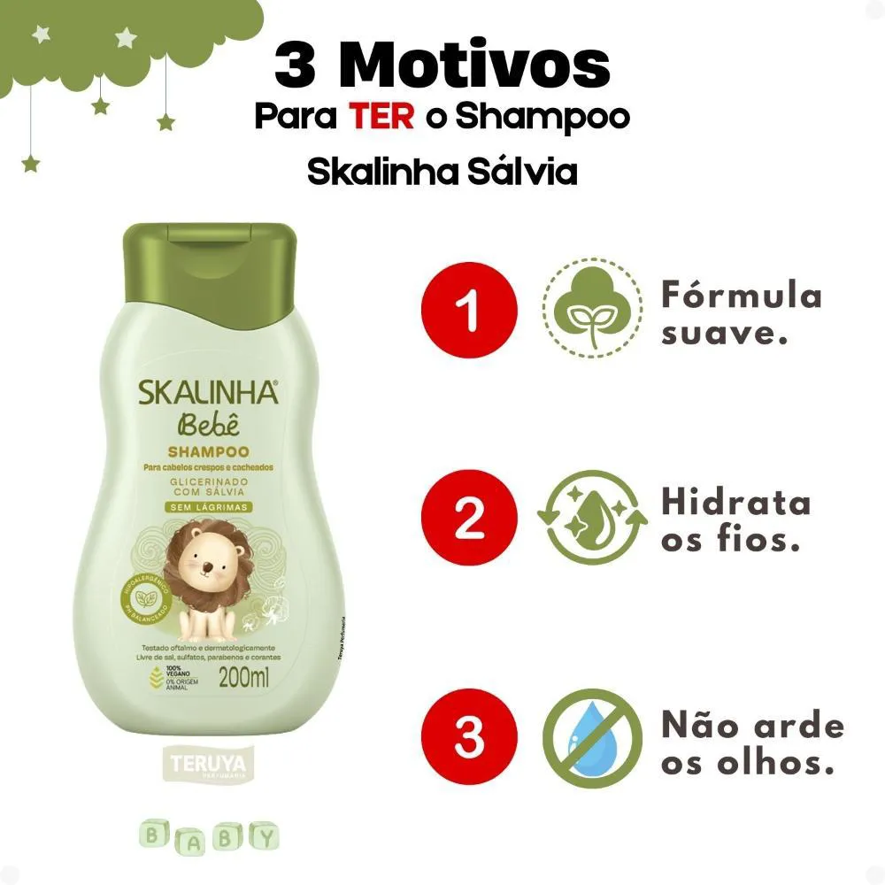 shampoo Skalinha Bebê Glicerinado Com Sálvia Para Cabelos Crespos e Cacheados 200ml