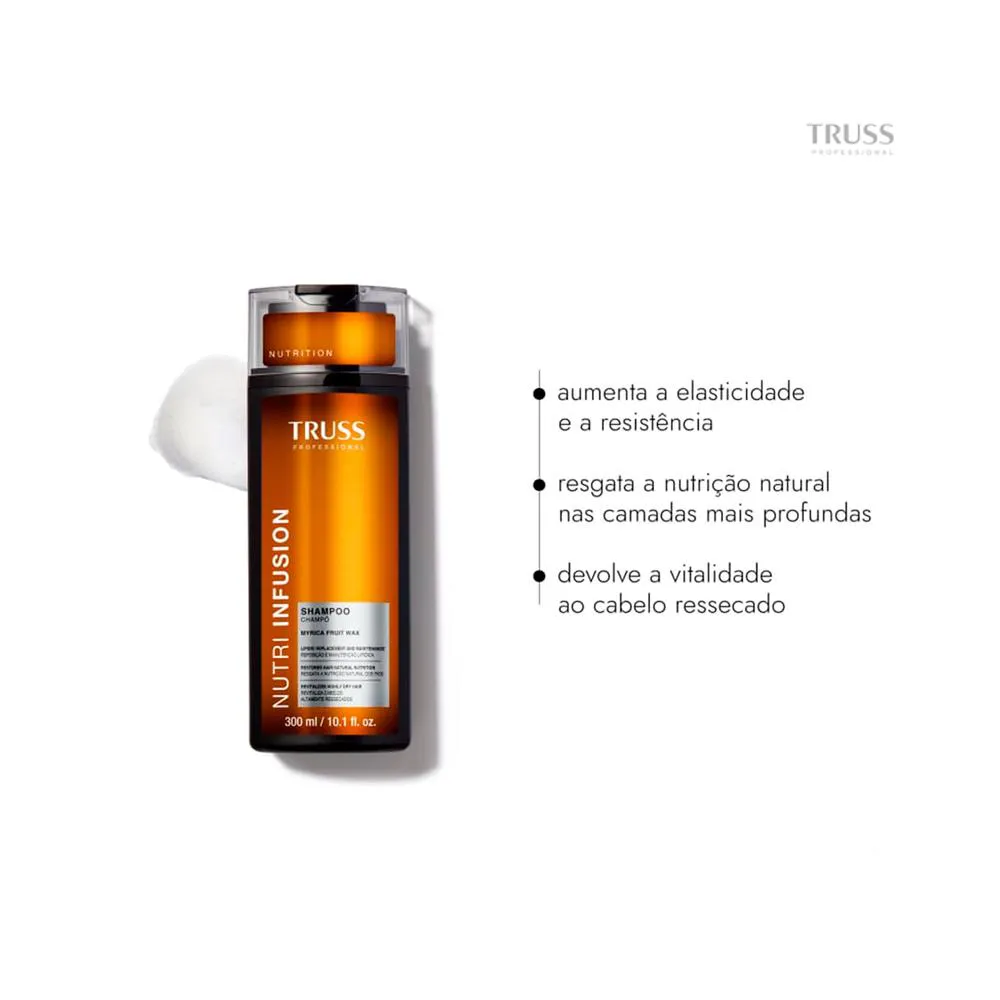 Shampoo para cabelos secos ou ressecados. Truss Nutri Infusion revitaliza os fios opacos, repondo nutrição e elasticidade.