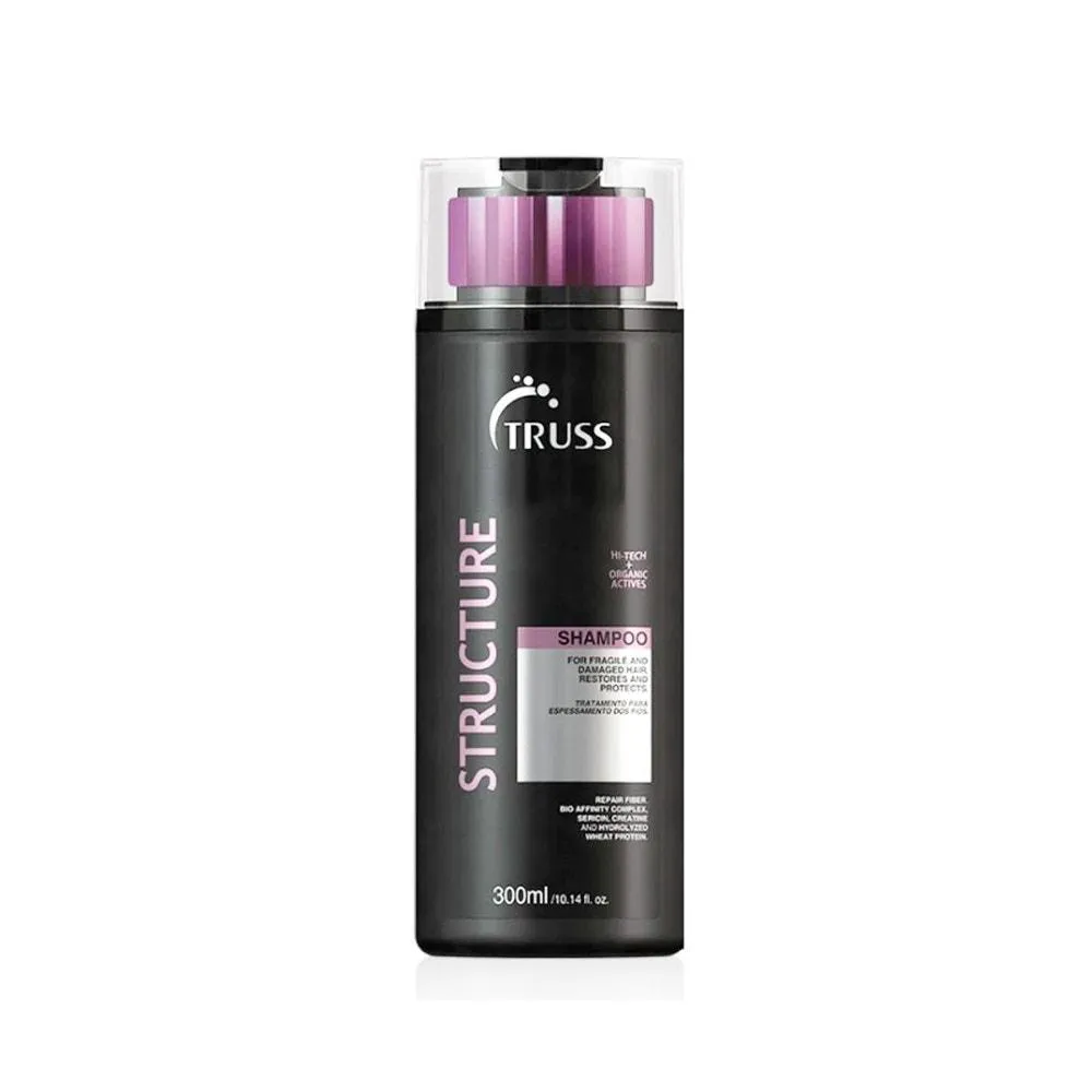 shampoo para cabelos finos e danificados. Shampoo Truss Structure higieniza enquanto recupera a elasticidade e resistência, além de proporcionar espessura e força aos cabelos finos. Shampoo Truss Structure auxilia no espessamento, pois forma uma película que envolve os fios, recuperando e encorpando fibras danificadas. Possui pH fisiológico, limpa sem agredir os fios.