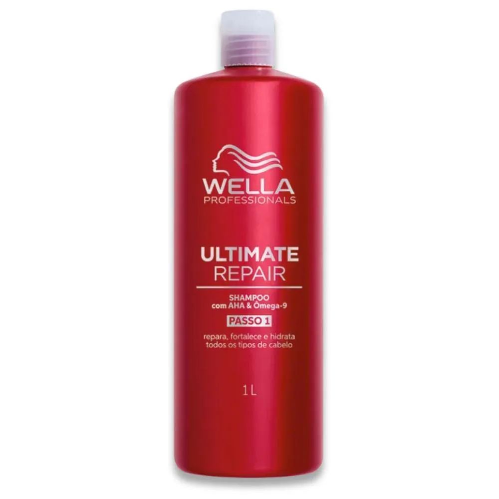 O shampoo Wella Professionals Ultimate Repair 1L oferece limpeza suave com tratamento intensivo para cabelos danificados, agora na versão profissional de 1 litro, ideal para salões ou uso prolongado em casa. Sua fórmula rica, cremosa e leve proporciona uma experiência luxuosa de cuidado capilar com resultados visíveis desde o primeiro uso.Com a exclusiva Ultimate Repair Technology, une AHA (Ácido Alpha-Hidroxi), que fortalece a estrutura interna dos fios, e Ômega-9, que nutre e repara a camada externa do cabelo. Esse combo poderoso promove uma reconstrução eficaz, reduzindo a quebra em até 99% e entregando fios até 12x mais macios e com brilho intenso.O shampoo repara danos em apenas 90 segundos, facilita o desembaraço e restaura a saúde e o movimento natural dos cabelos, mesmo os mais fragilizados por química, coloração ou calor excessivo. A fragrância elegante e a textura aveludada tornam a rotina de cuidados uma verdadeira experiência sensorial.Modo de uso: